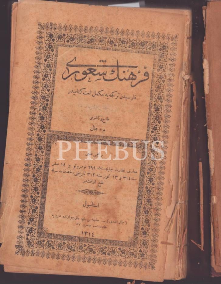 FERHENG-İ ŞUÛRÎ (Fârsîden Türkçeye Mükemmel Lügat Kitâbı), Cemal Efendi Matbaası, İstanbul 1314, 480 s., 16x24 cm, sırtı ve birkaç sayfası ayrık haliyle