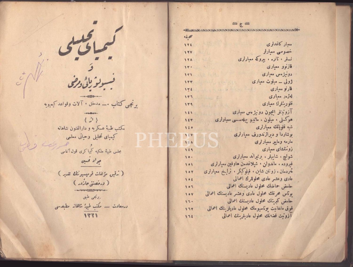 KİMYÂ-YI TAHLÎLÎ VE FİZYOLOJYÂÎ VE MARAZÎ, Cevad Tahsin, Mekteb-i Tıbbiye-i Şahane Matbaası, İstanbul 1321, 164 s., 15x22 cm