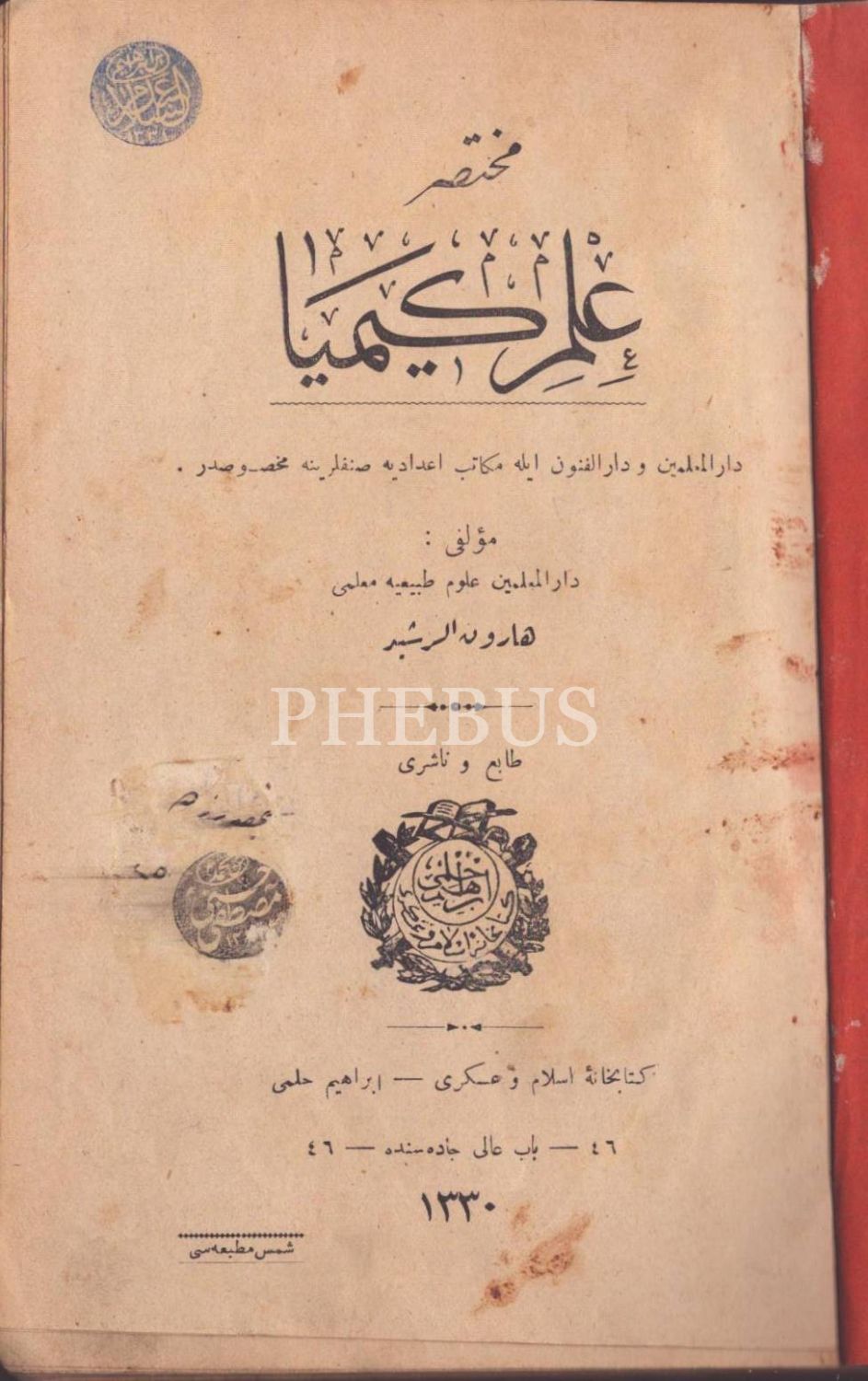 MUHTASAR İLM-İ KİMYA, Harun er-Reşid, Şems Matbaası, İstanbul 1330, 273 s., 13x20 cm