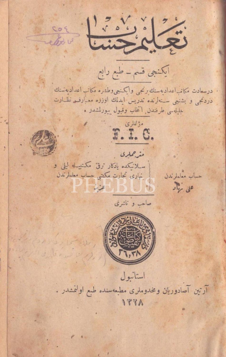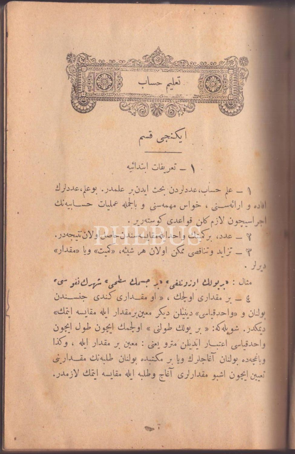 TA´LÎM-İ HESÂB (İkinci Kısım), F. I. C., çev. Ali Nihad-Aziz, Artin Asaduryan ve Mahdumları Matbaası, İstanbul 1328, 448 s., 14x20 cm
