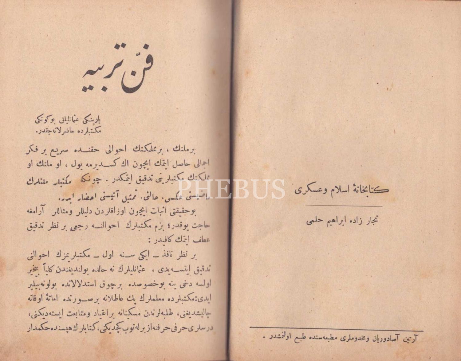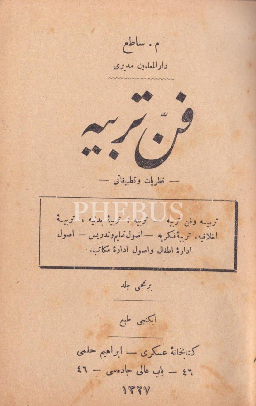 FENN-İ TERBİYE (Nazariyyât ve Tatbîkâtı [Teori ve Uygulama]- 1. Cilt), M. Sâtı, Artin Asaduryan ve Mahdumları Matbaası, İstanbul 1327, 346 s., 12x18 cm