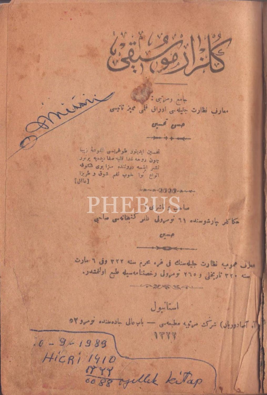 GÜLZÂR-I MÛSİKÎ, derl. Hasan Tahsin, A. Asaduryan Şirket-i Mürettibiye Matbaası, İstanbul 1322, 363 s., 15x20 cm