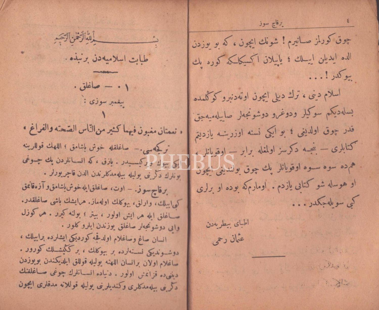 TABÂBET-İ İSLÂMİYYE [İslamî Tıp], Osman Rahmi, Artin Asaduryan ve Mahdumları Matbaası, İstanbul 1328, 86 s., 11x18 cm