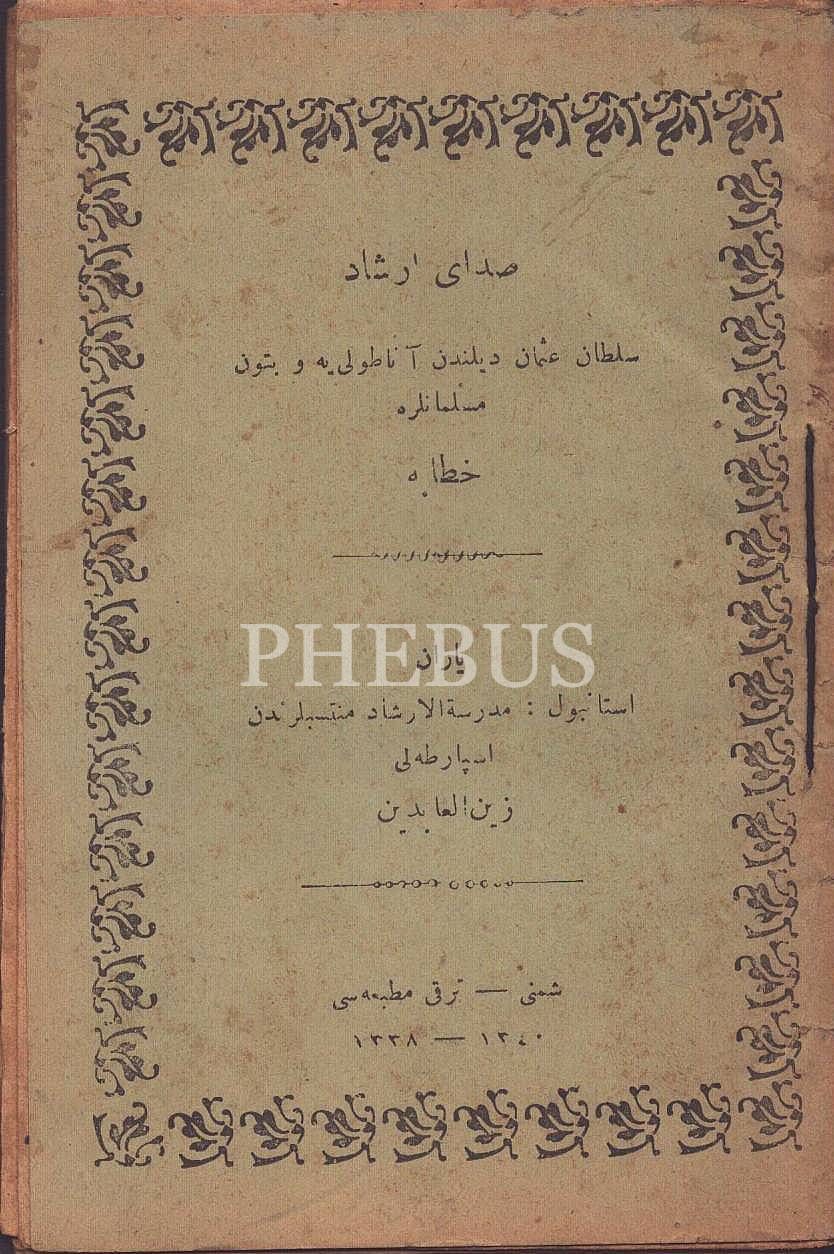 SADÂ-YI İRŞÂD (Sultan Osman Dilinden Anadolu´ya ve Bütün Müslümanlara Hitâbe), Ispartalı Zeynelabidin, Terakki Matbaası, Şumnu 1340, 47 s., 11x16 cm