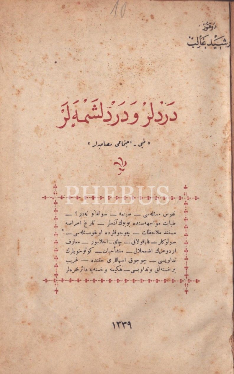 DERDLER VE DERDLEŞMELER (Tıbbî-İctimâî Musâhabeler), Reşid Galib, 1339, 112 s., 16x22 cm