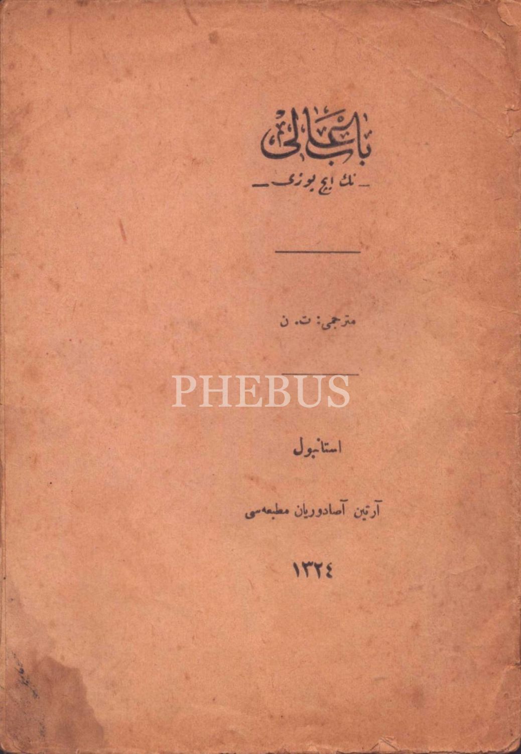 BÂB-I ÂLδNİN İÇ YÜZÜ, çev. T. N., Artin Asaduryan Matbaası, İstanbul 1324, 32 s., 15x21 cm