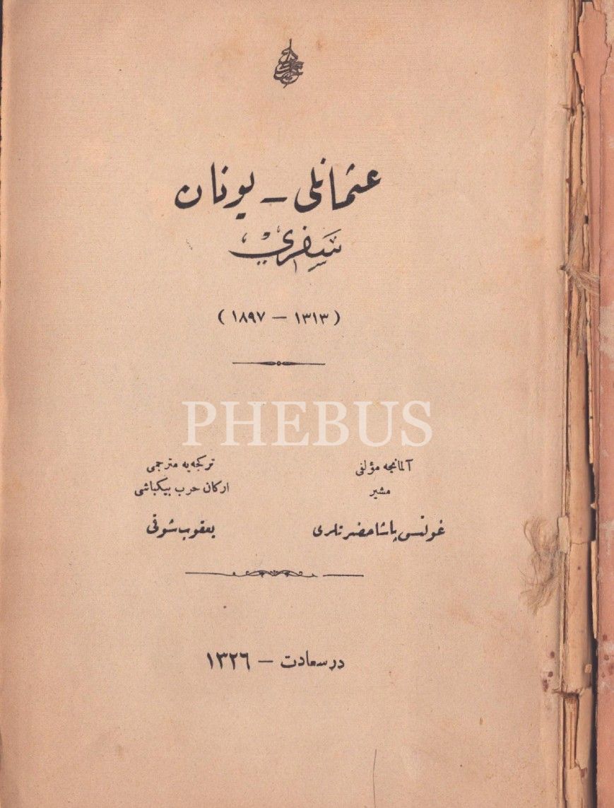 OSMANLI-YUNAN SEFERİ (1313-1897), Goltz Paşa, çev. Yakub Şevki, Mekteb-i Fünun-ı Harbiye-i Osmani Matbaası, İstanbul 1326, 297 s., 15x22 cm