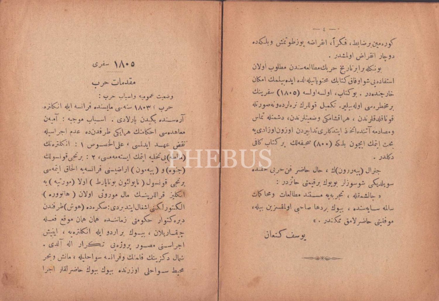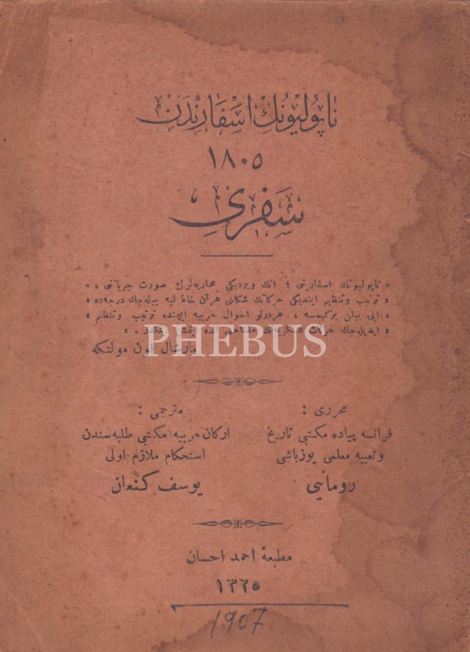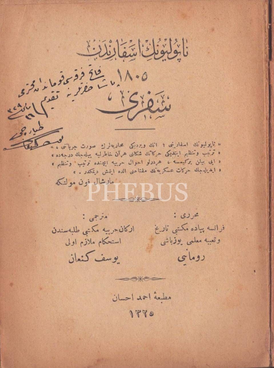 Çevirmeninden ithaflı ve imzalı NAPOLYON´UN ESFÂRINDAN 1805 SEFERİ, Romany, çev. Yusuf Kenan, Ahmed İhsan Matbaası, 1325, 81 s., 12x17 cm