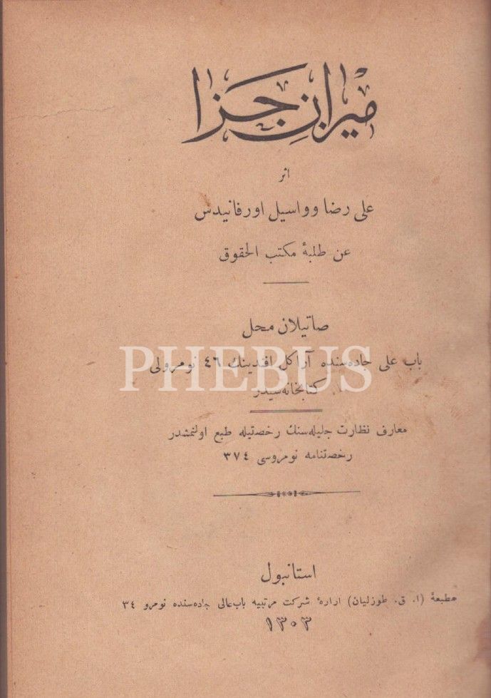 MÎZÂN-I CEZÂ, Ali Rıza-Vasil Orfanidis, A. K. Tuzluyan Matbaası, İstanbul 1303, 128 s., 14x19 cm