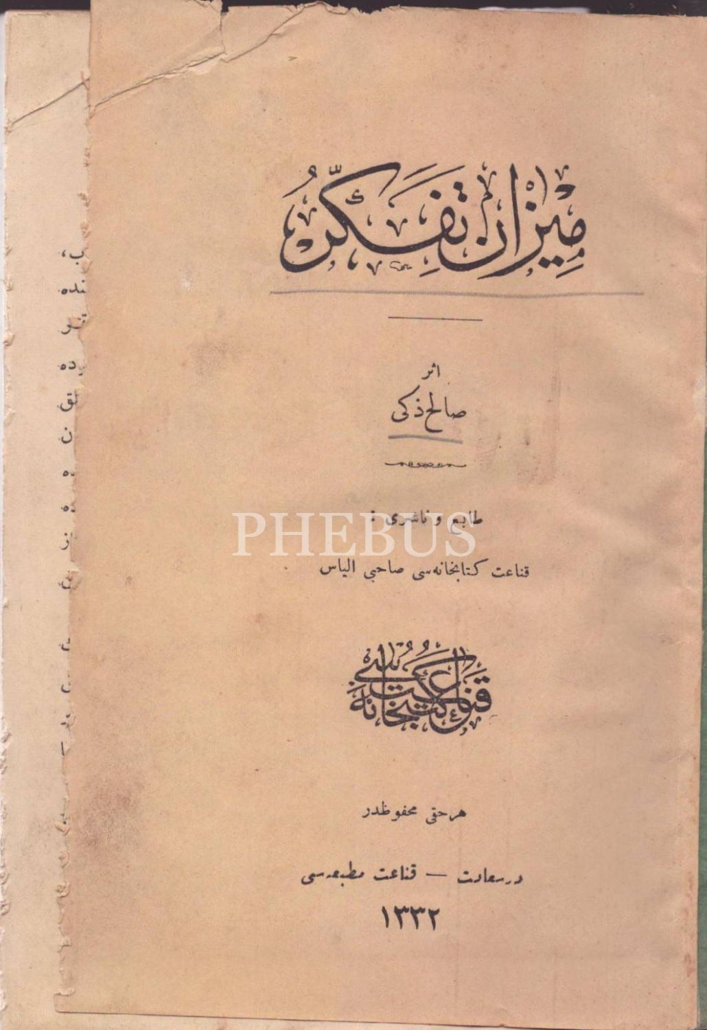 MÎZÂN-I TEFEKKÜR, Salih Zeki, Kanaat Matbaası, İstanbul 1332, 285 s., 13x20 cm