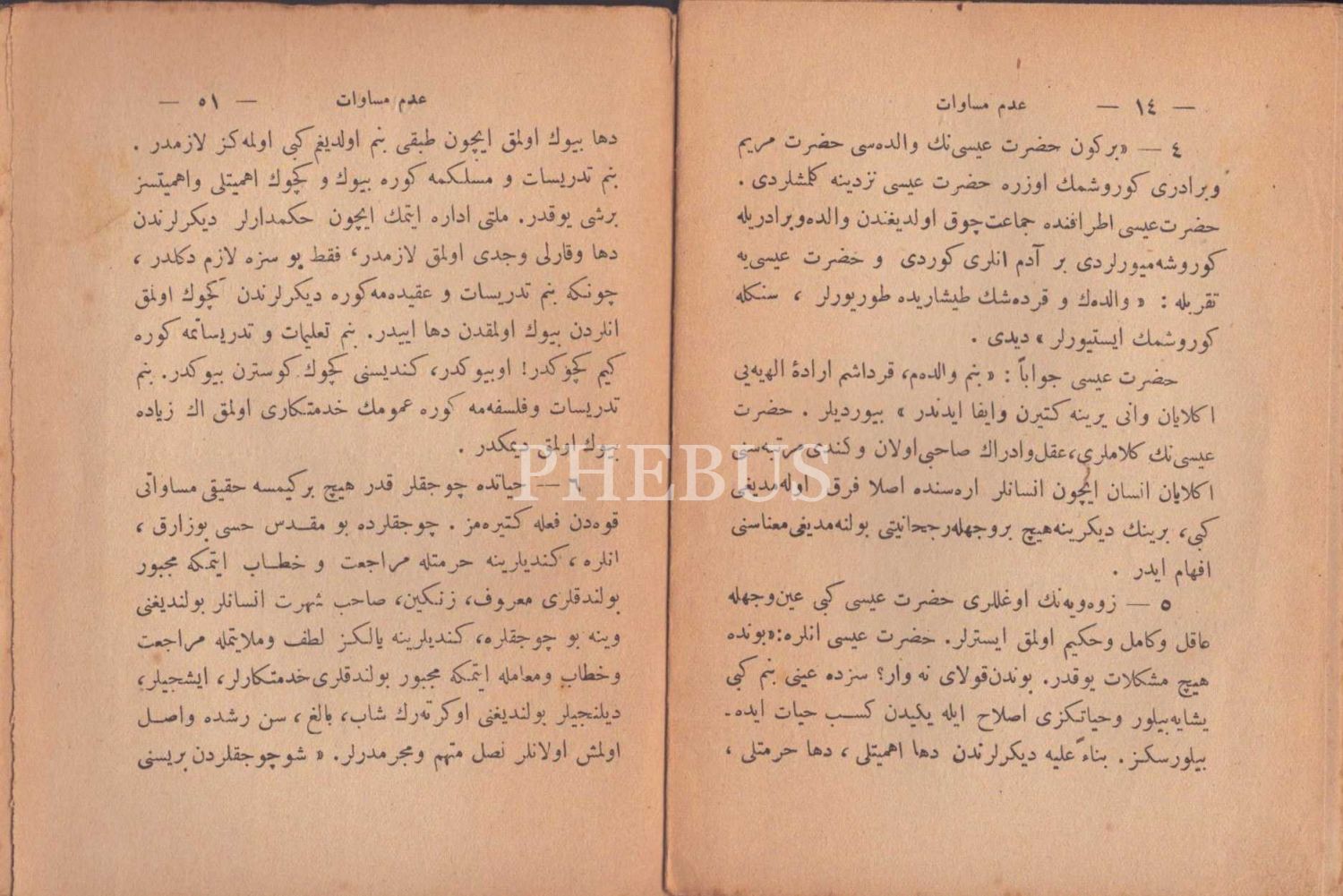 ADEM-İ MÜSÂVÂT, L. N. Tolstoy, Rusçadan çev. Ali Fuad, Cihan Matbaası, İstanbul 1342, 24 s., 12x16 cm