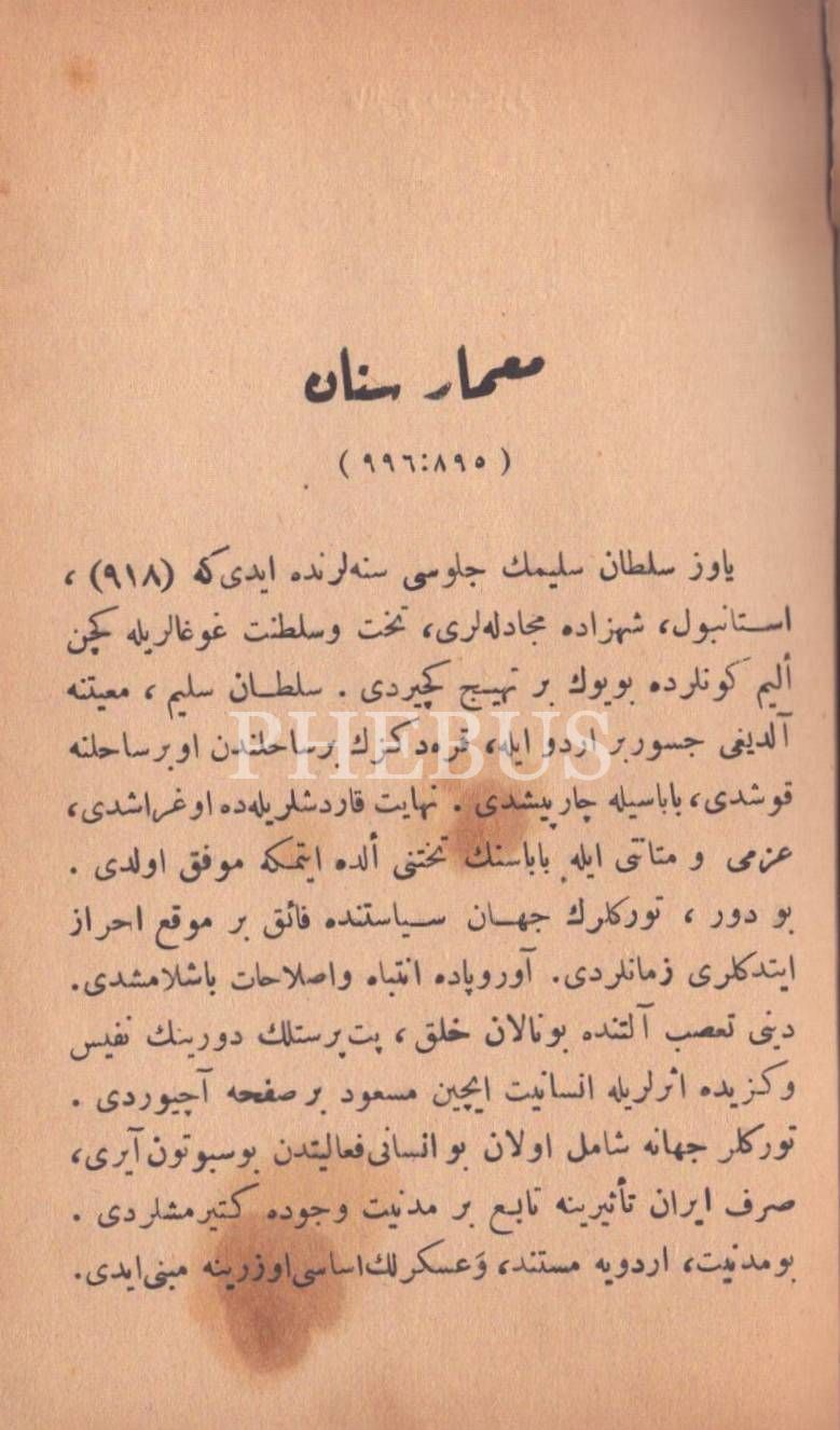 "Mimar Sinan- Selanikî Mustafa Efendi- Mimar Davud Ağa- Seyyid Lokman- Hâce Sadeddin- Peçovî İbrahim Efendi- Karaçelebizâde Abdülaziz Efendi- Şeyhülislam Yahya Efendi- Koca Mimar Kasım Ağa- Silahdar Fındıklılı Mehmed Ağa- Naîmâ- Nedim- Raşid- İbrahim Müteferrika- Koca Ragıb Paşa"