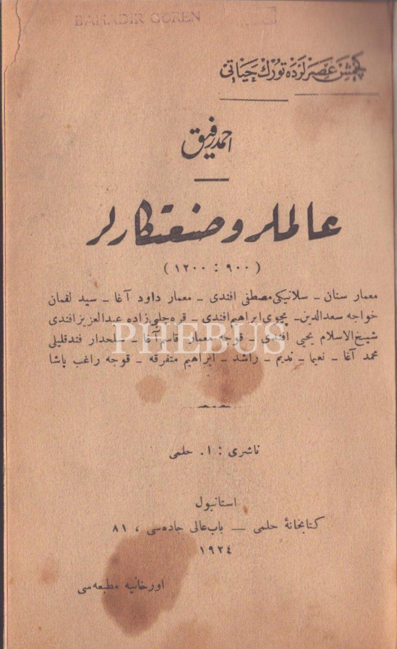 ÂLİMLER VE SAN´ATKÂRLAR (900-1200), Ahmed Refik, Orhaniye Matbaası, İstanbul 1924, 407 s., 12x19 cm