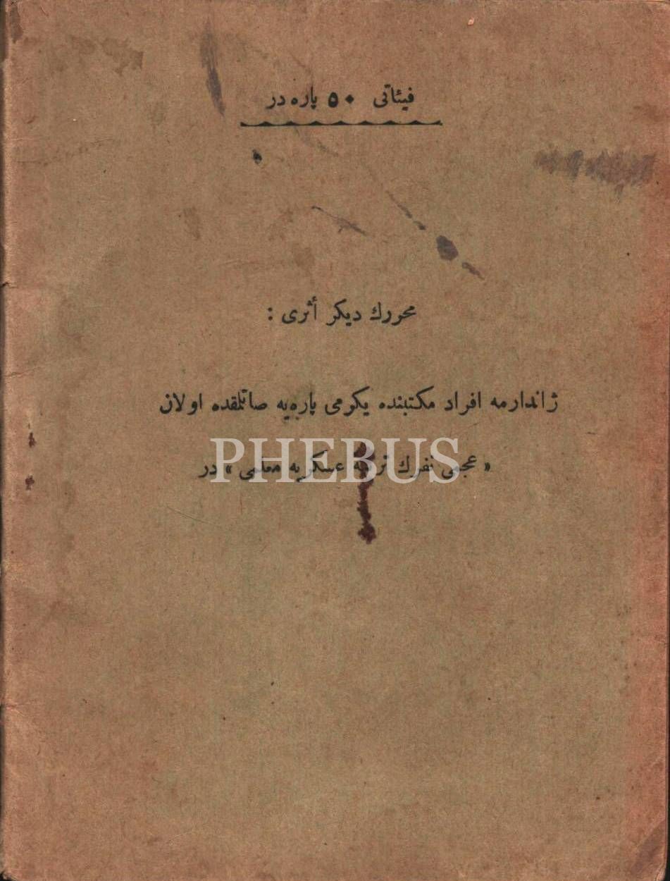 Yazarından ithaflı ve imzalı KÜÇÜK ZÂBİTLERE NASÎHAT (1. Kısım), Mülazım Mehmed Ali, Yeni Osmanlı E. Aznavur Matbaası, İstanbul 1326, 27 s., 12x16 cm