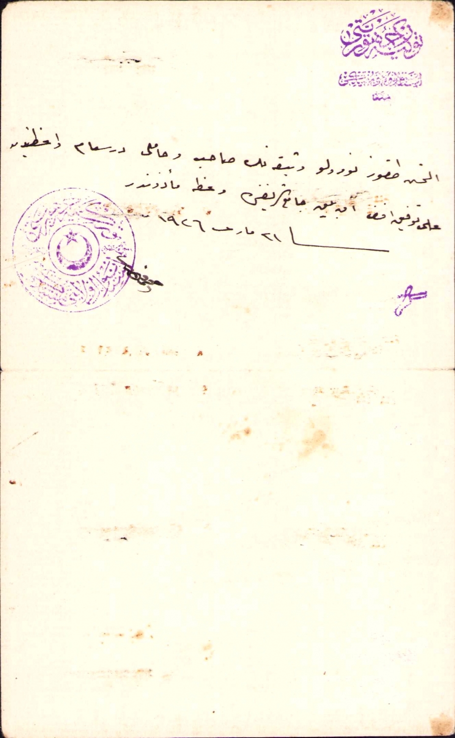 Osmanlı Diyanet İşleri Başkanlığı İstanbul Müftülüğüne tarafından Pazarcıklı Hacı Ali Tevfik'in Fatih Akbıyık camii şerife vaiz olduğu konulu evrak, 1926,11x18 cm