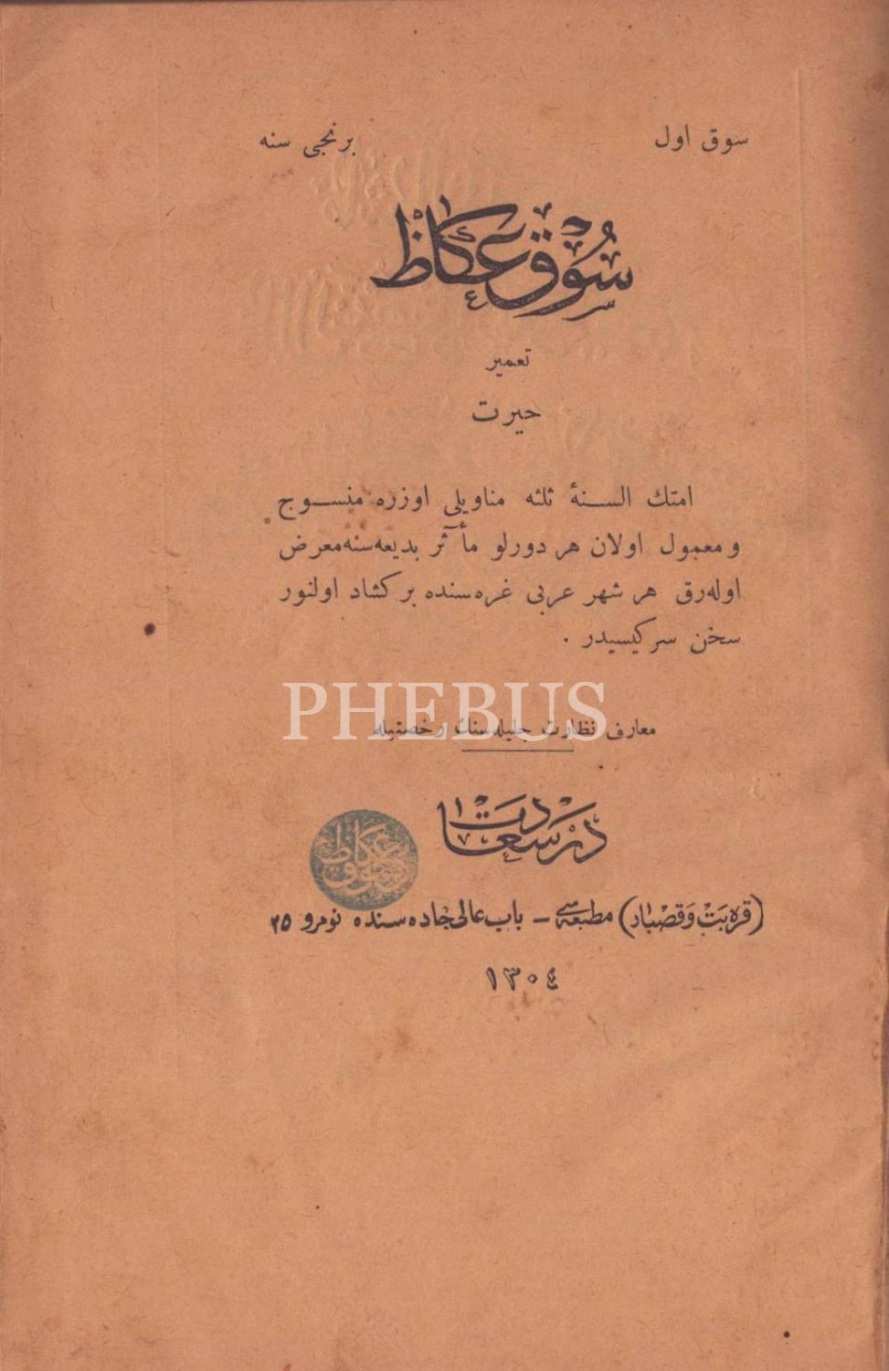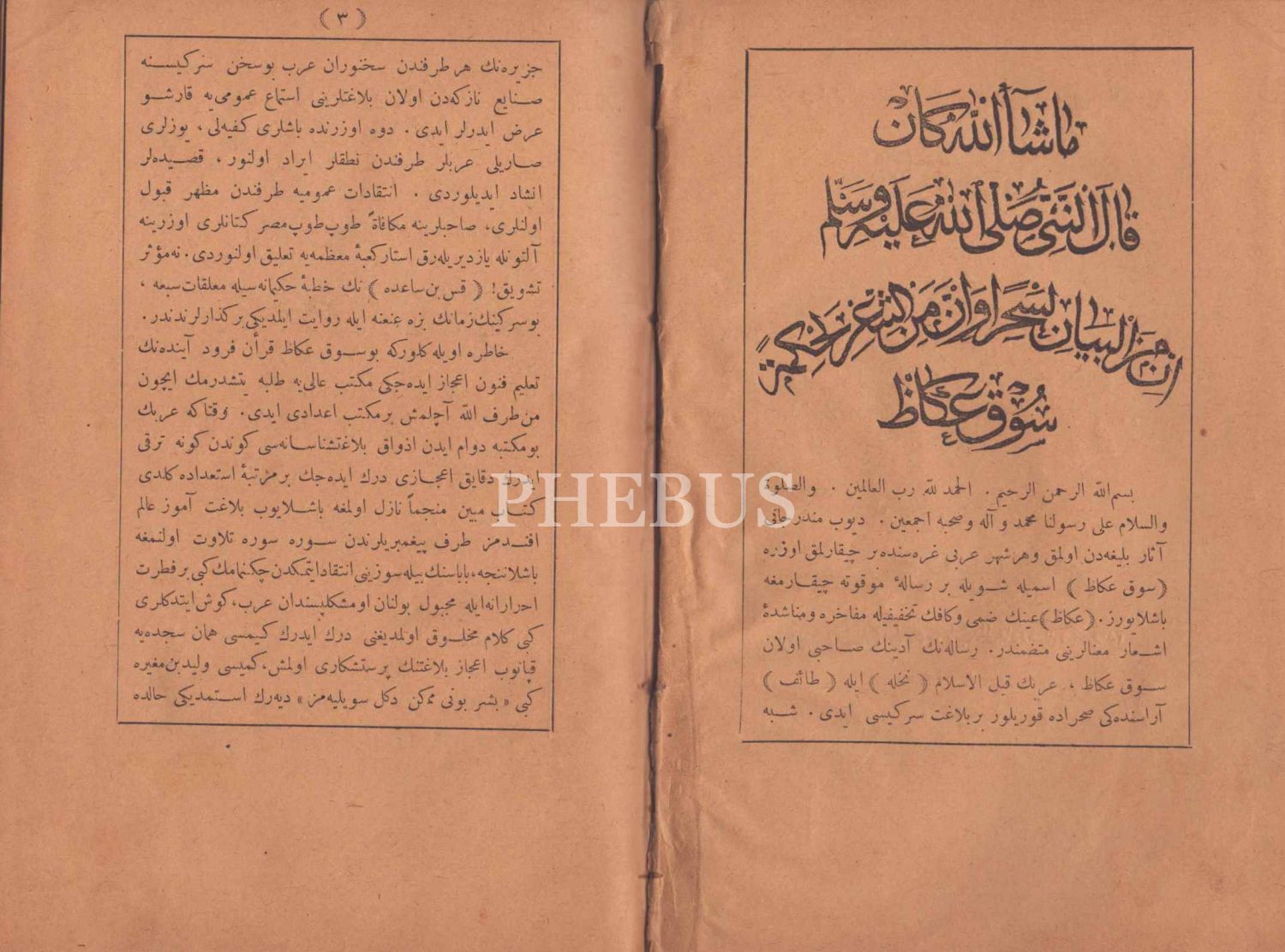 Arapça-Osmanlıca SÛK-I UKÂZ [Ukâz Çarşısı], Karabet ve Kasbar Matbaası, İstanbul 1304, 115 s., 15x21 cm