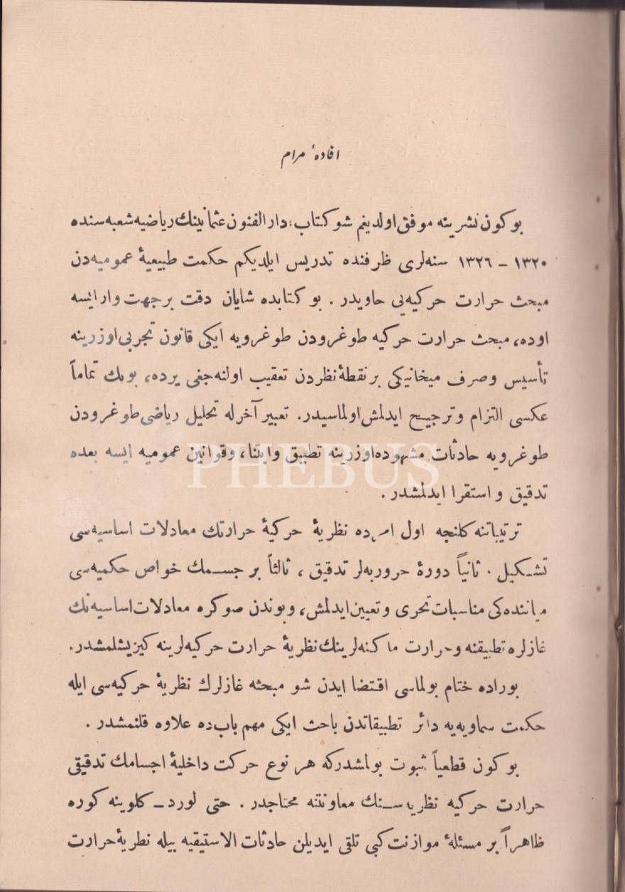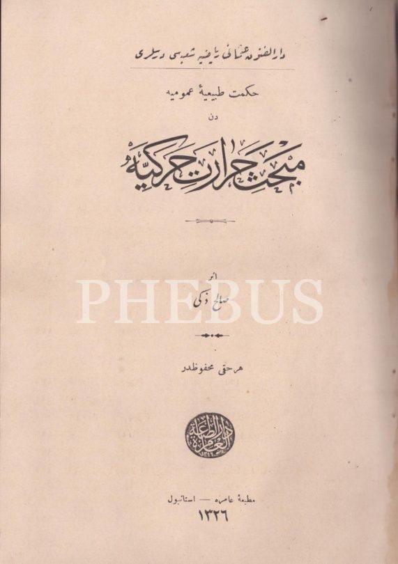MEBHAS-İ HARÂRET-İ HAREKİYYE [Termodinamik], Salih Zeki, Amire Matbaası, İstanbul 1326, 207 s., 16x23 cm