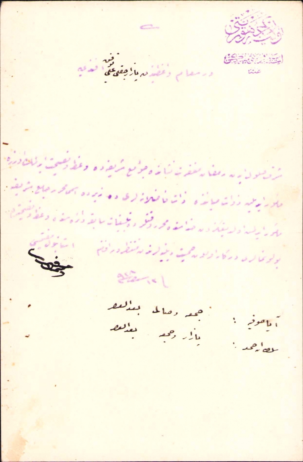 Osmanlı Diyanet İşleri Başkanlığı İstanbul Müftülüğü tarafından Ramazanda camii şeriflerde vaaz ve nasihat verecek olan zevatın görevlendirilmesine dair evrak. (Pazarcıklı Vaiz Hacı Ali Tevfik'in görevlendirme belgesi), 1928,14x20 cm