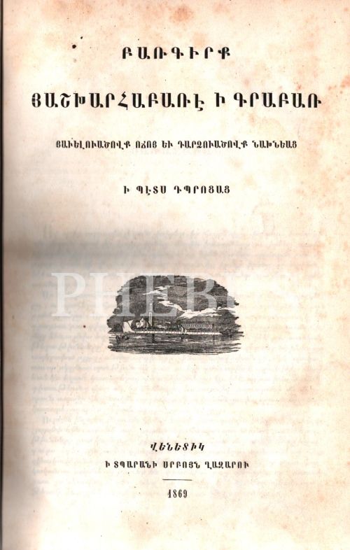 PARAKİRK AŞHARAPARE İ KRAPAR (Modern Ermeniceden Klasik Ermeniceye Sözlük), Surp Ğazar Matbaası, Venedik 1869, 572 s., 16x24 cm
