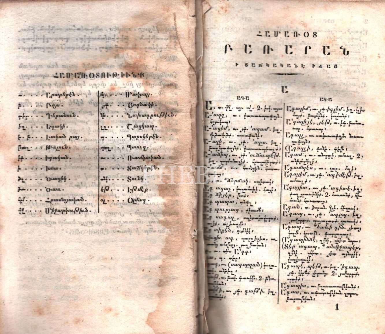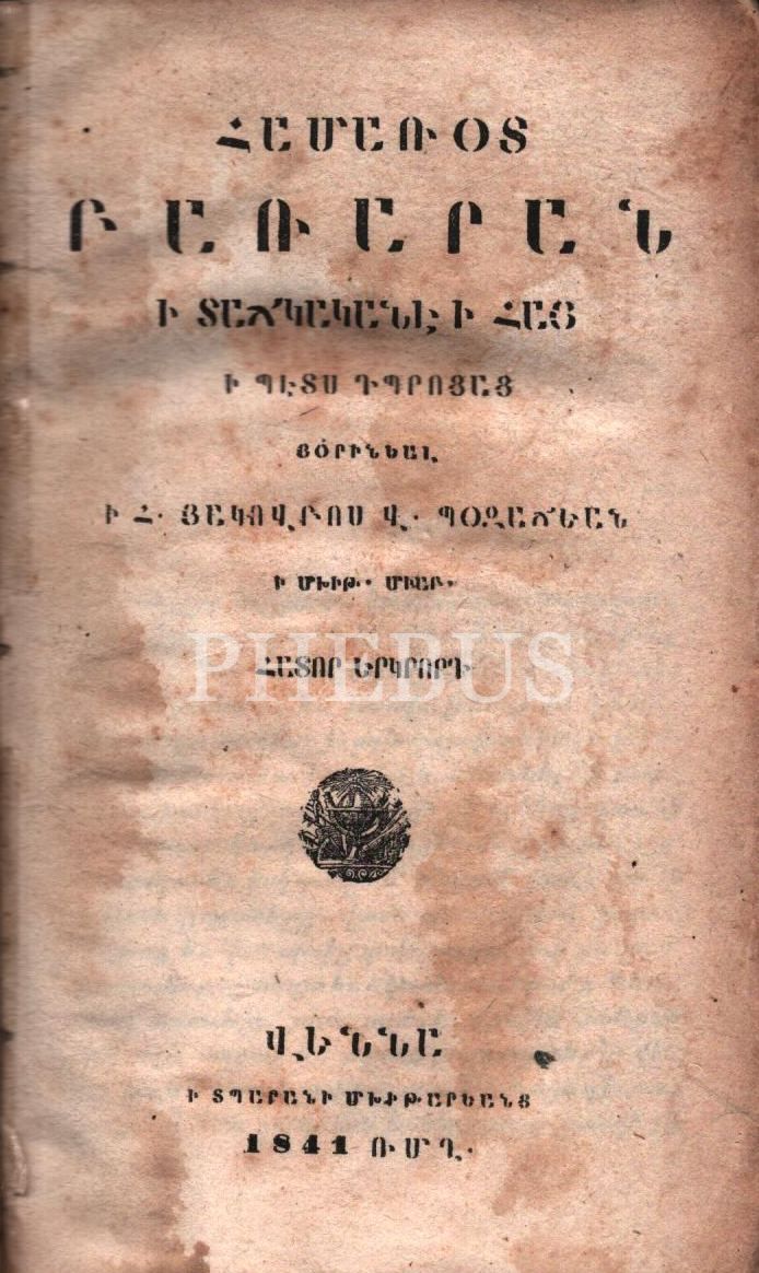 HAMAROD PARARAN İ DACGERENE İ HAY- HADOR 2 (Türkçeden Ermeniceye Küçük Sözlük- 2. Cilt), Rahip Hagopos Bozacıyan, Mıhitaryan Matbaası, Viyana 1841, 1023 s., 10x15 cm