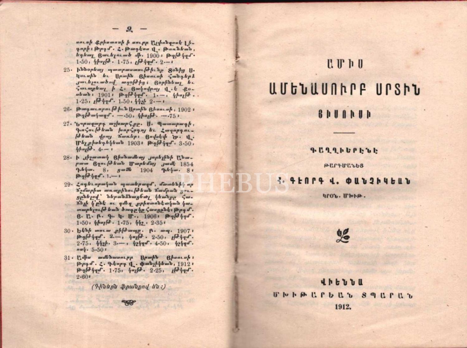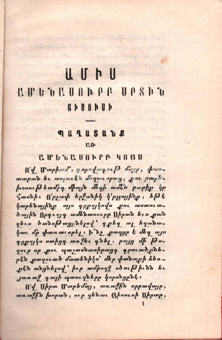 AMİS AMENASURP SIRDİN HİSUSİ (İsa´nın Kutsal Kalbi Ayı), Peder Kevork Pançigyan, Mıhitaryan Matbaası, Viyana 1912, 223 s., 11x15 cm
