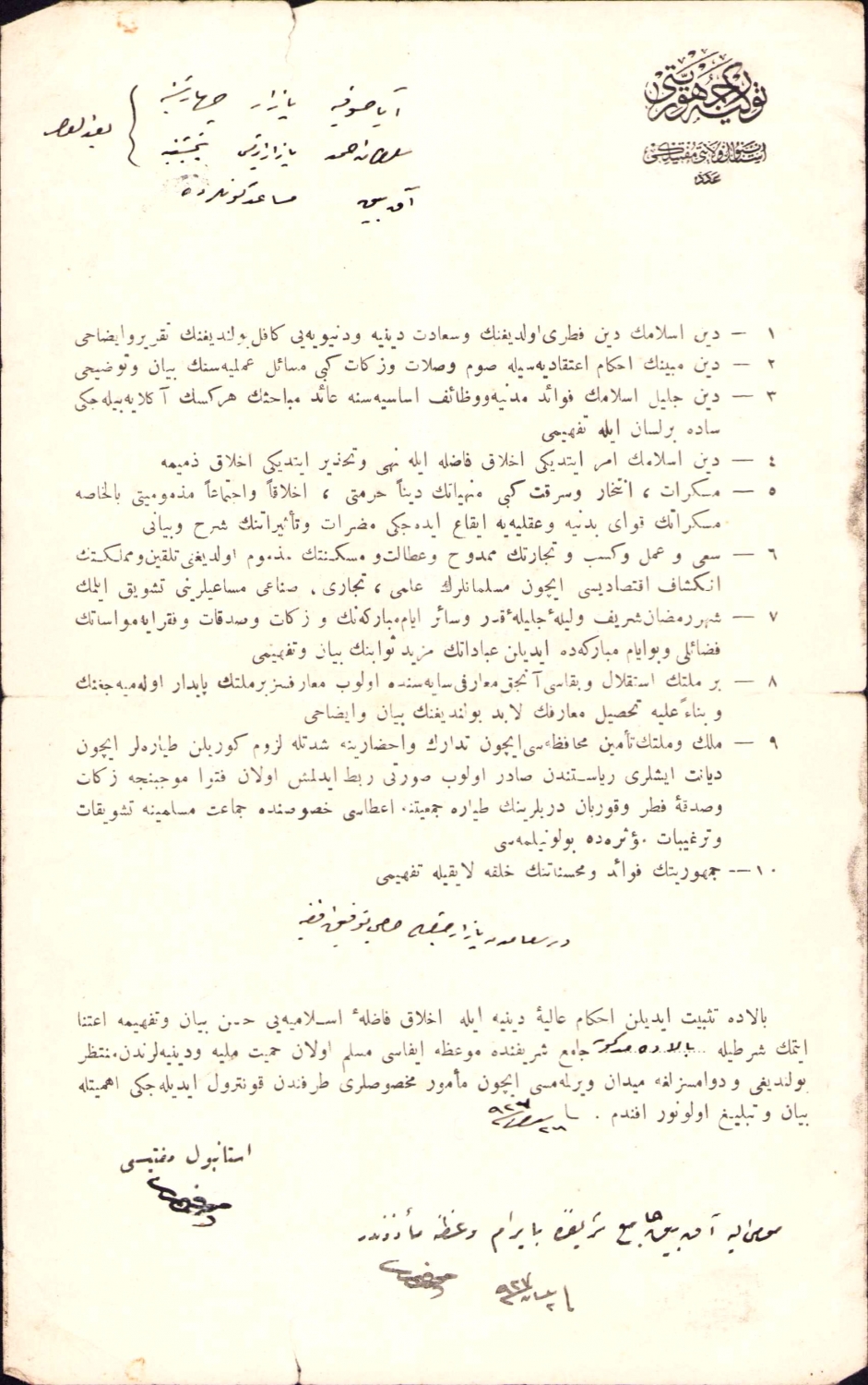 Osmanlı Türkiye Cumhuriyeti İstanbul Müftülüğü tarafından cami ve mescitlerin kontrol memuru ve müfettiş görevlendirmesi, İstanbul müftüsü imzalı 1928 tarihli, 115x23 cm