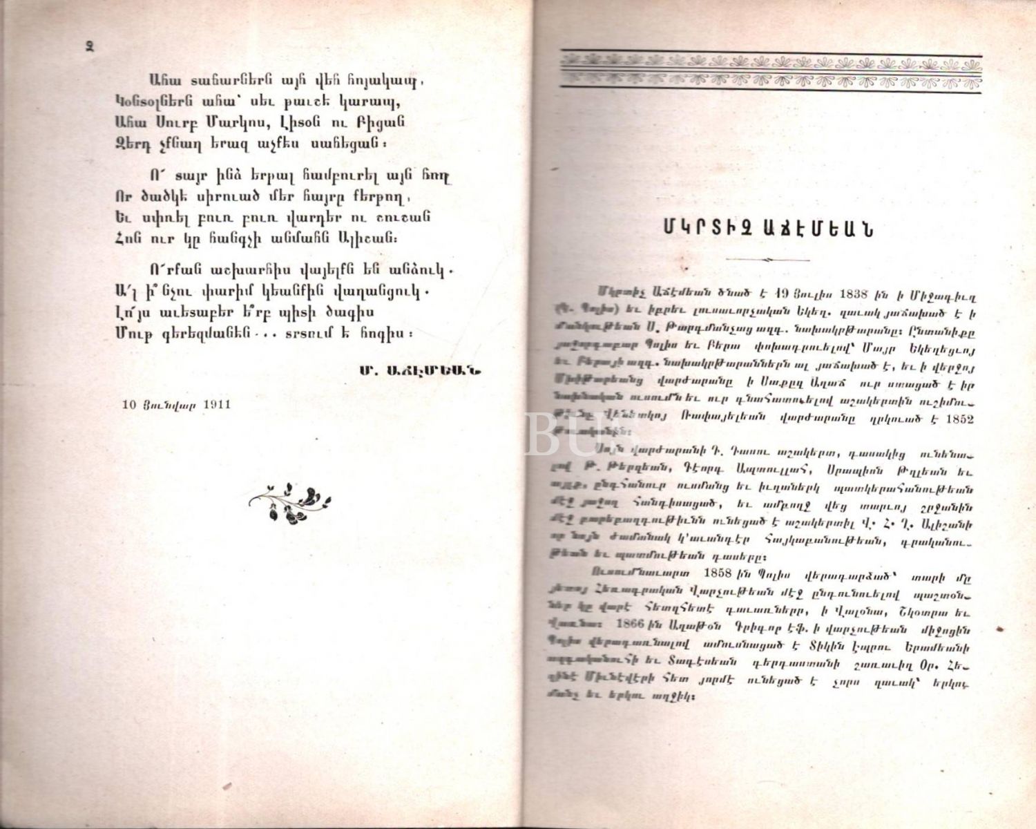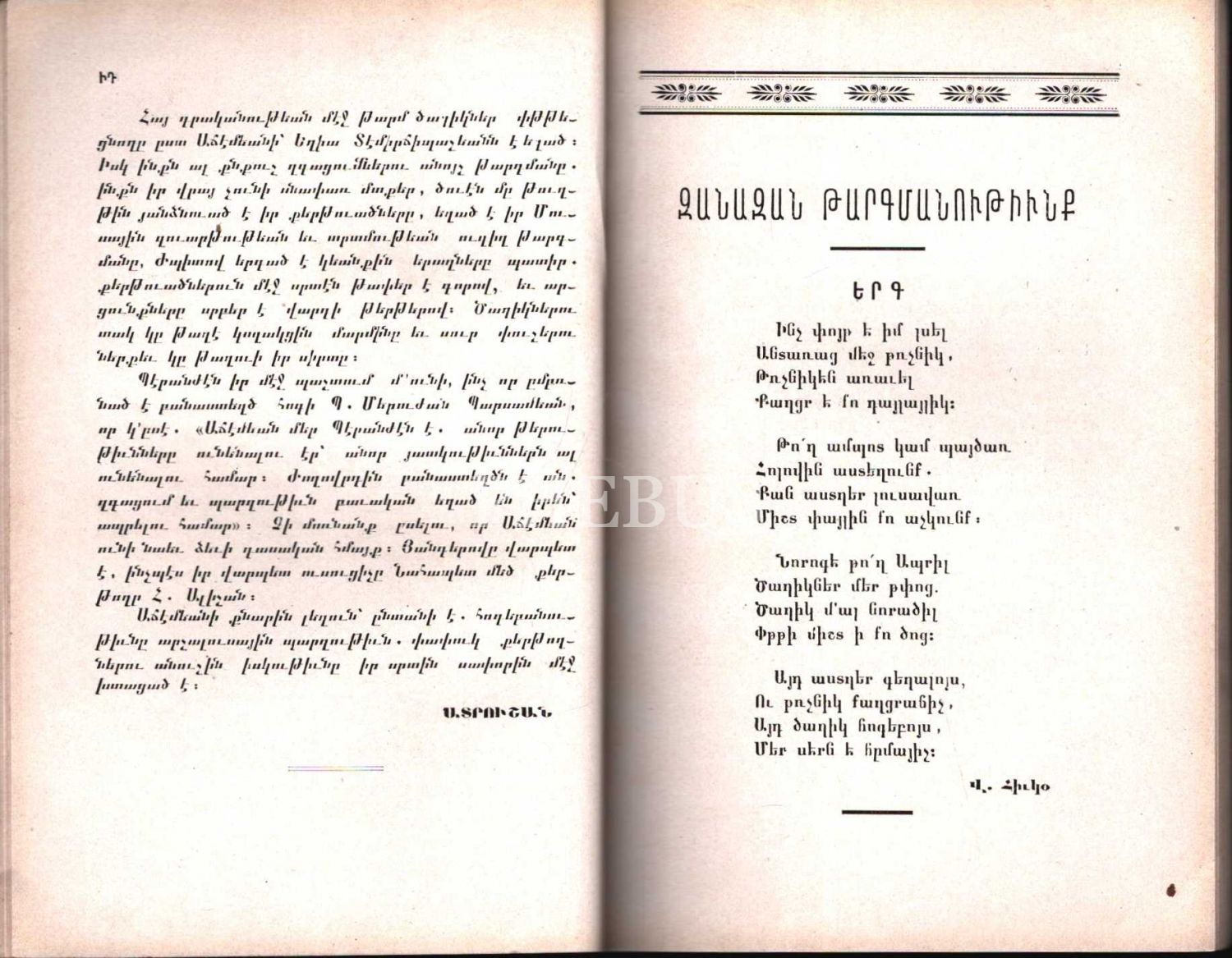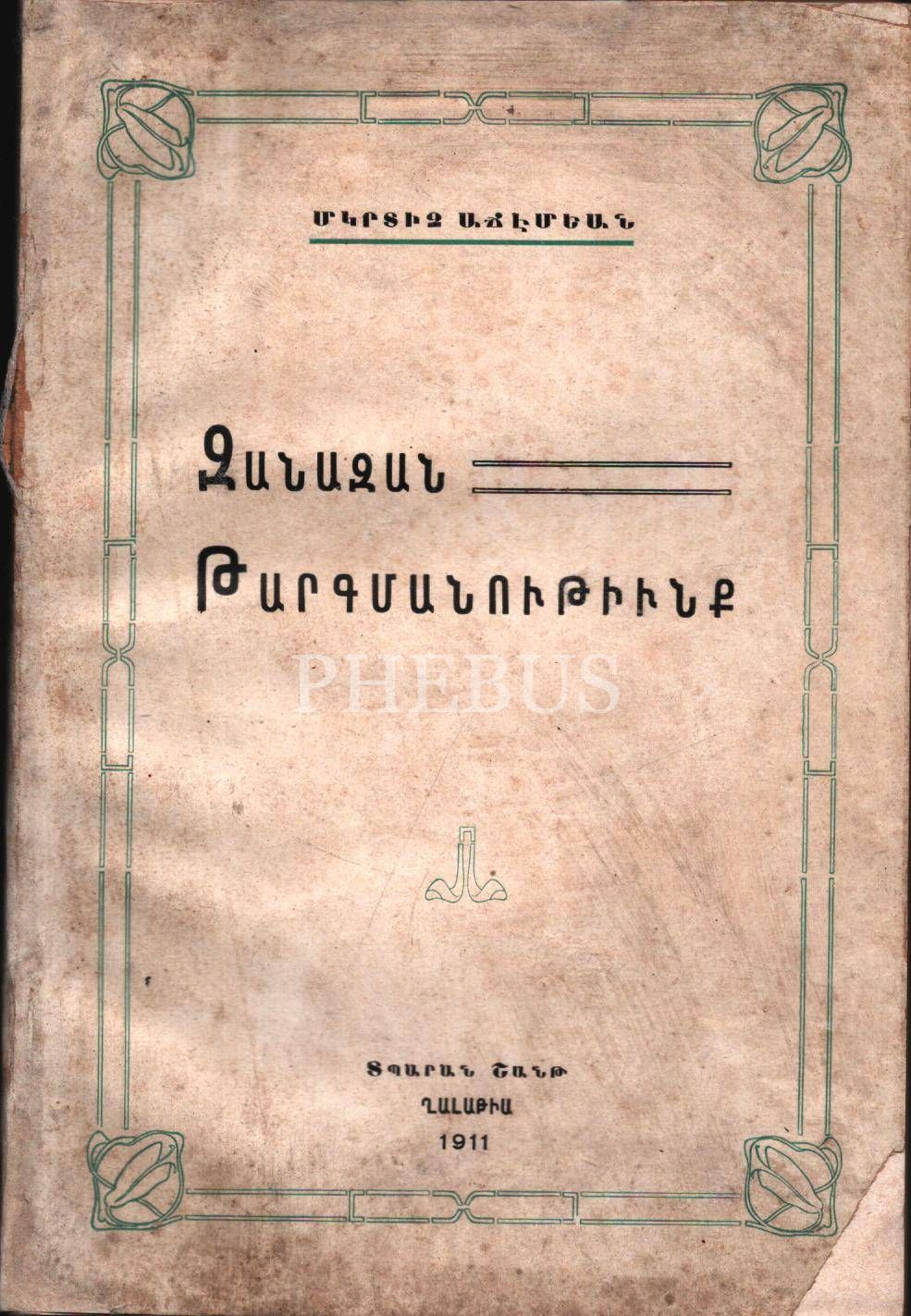ZANAZAN TARKMANUTYUNNER (Çeşitli Çeviriler), Mıgırdiç Acemyan, Şant Matbaası, İstanbul 1911, 85 s., 12x18 cm