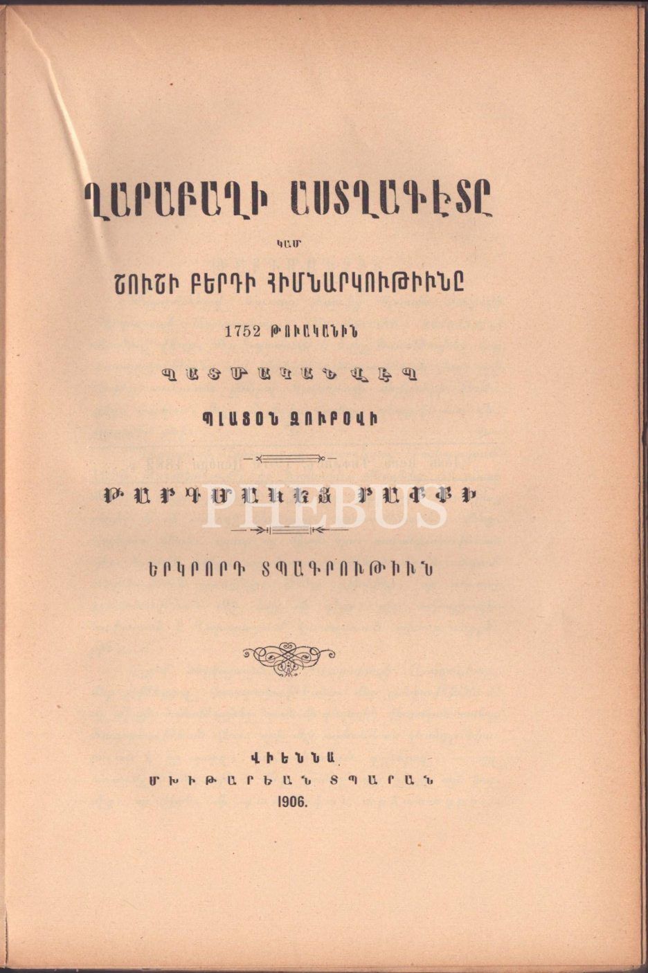 HAMSAYİ MELİKUTYUNNERI (Karabağ´ın Beş Melikdomu), Raffi, Mıhitaryan Matbaası, Viyana 1906, 709 s., 16x24 cm, sayfaları açılmamış haliyle