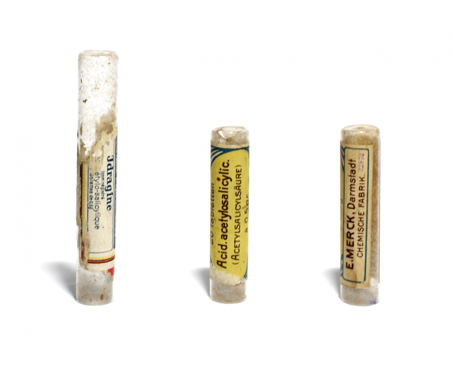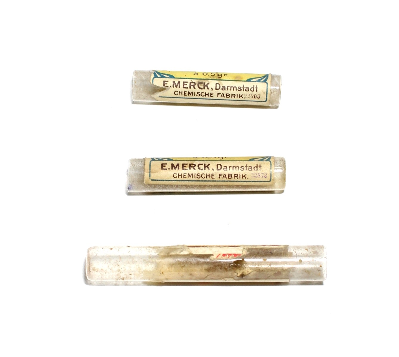 Tıp, 3 adet ilaç tüpü, iki tanesi 7x2 cm - 10x2 cm.