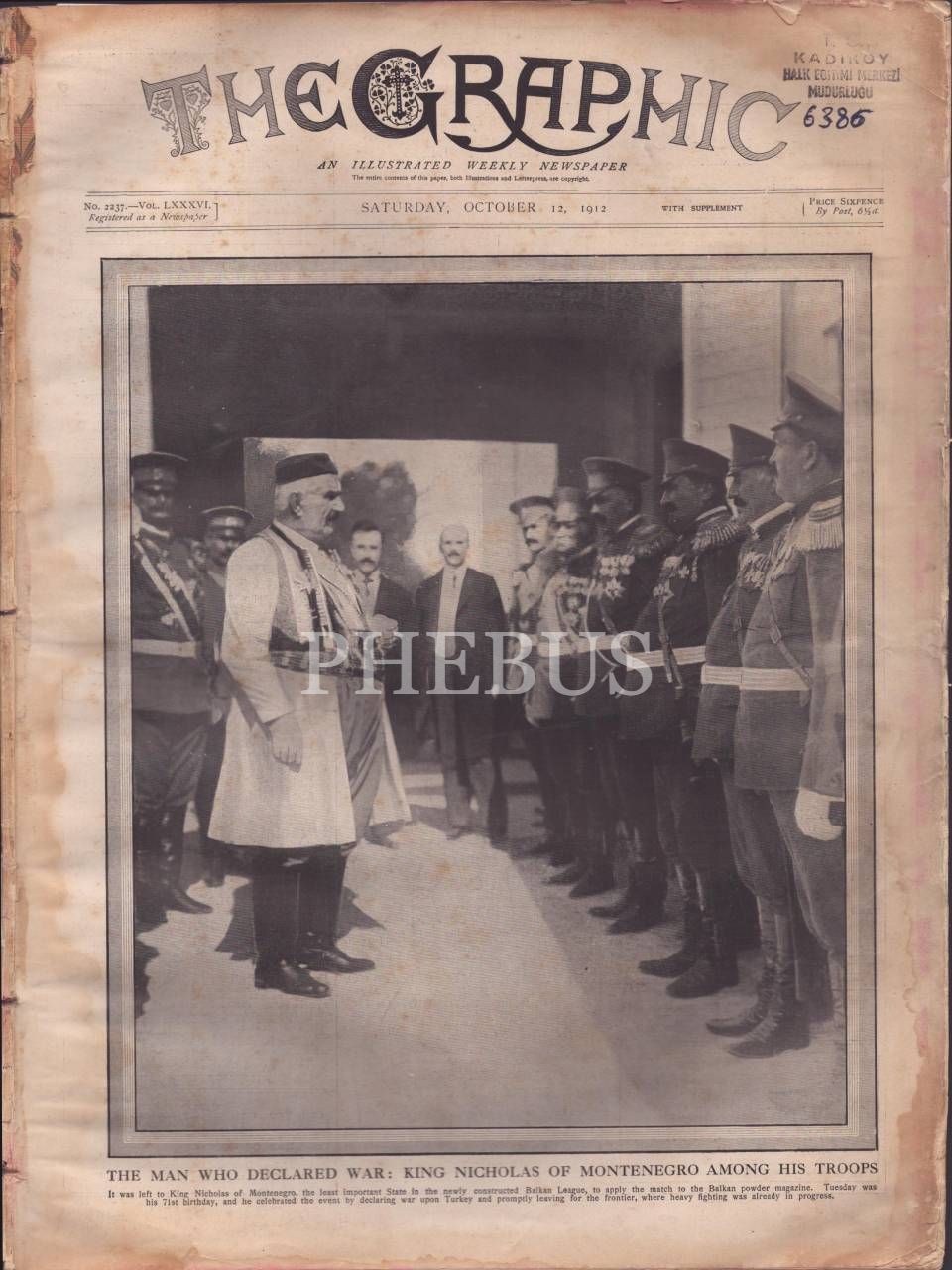 THE GRAPHIC dergisinin, Karadağ Kralı Nicholas ve askerlerine ait kapak görselli 2237. sayısı, 1912, 29x40 cm