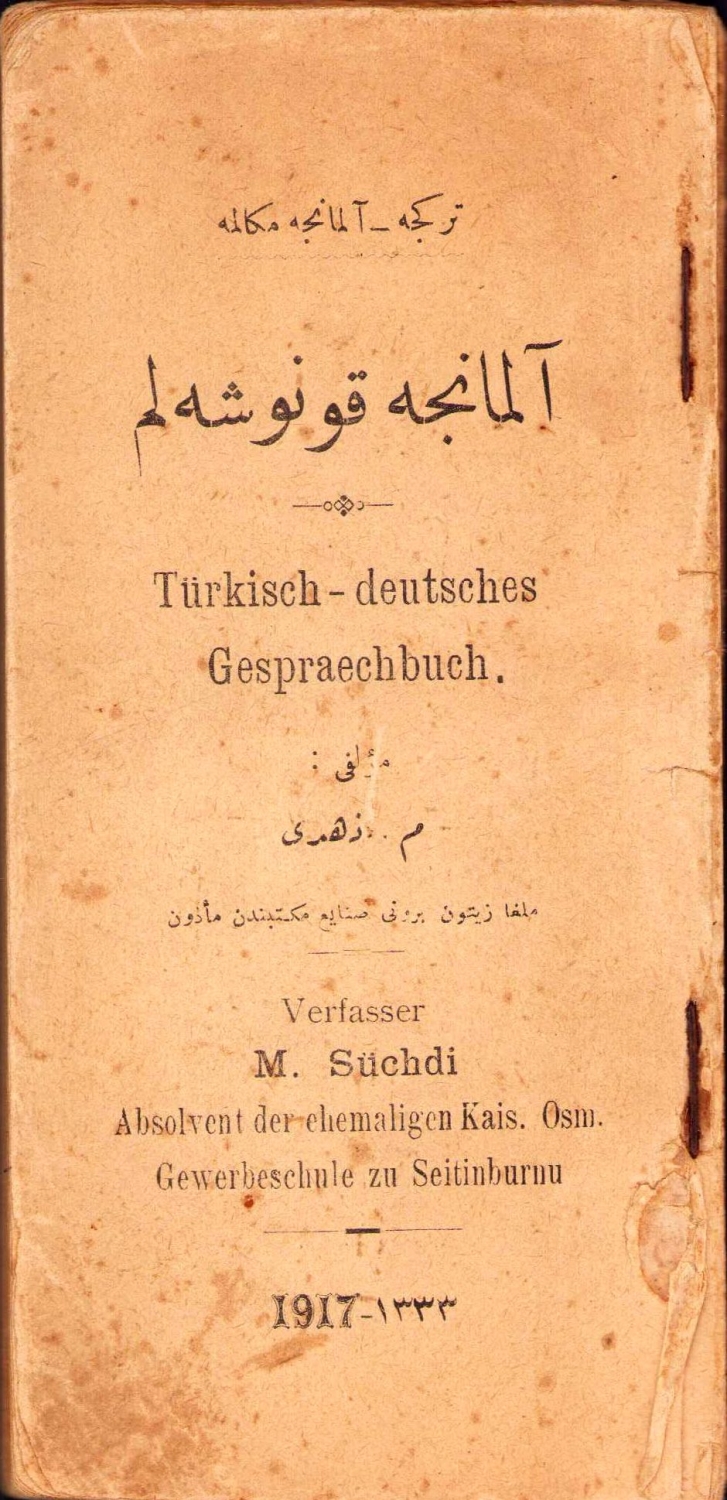 Türkçe - Almanca Mükaleme, Almanca Konuşalım, M. Zühdi, hicri 1333, sırtı haliyle, 85 sayfa, 7x16 cm
