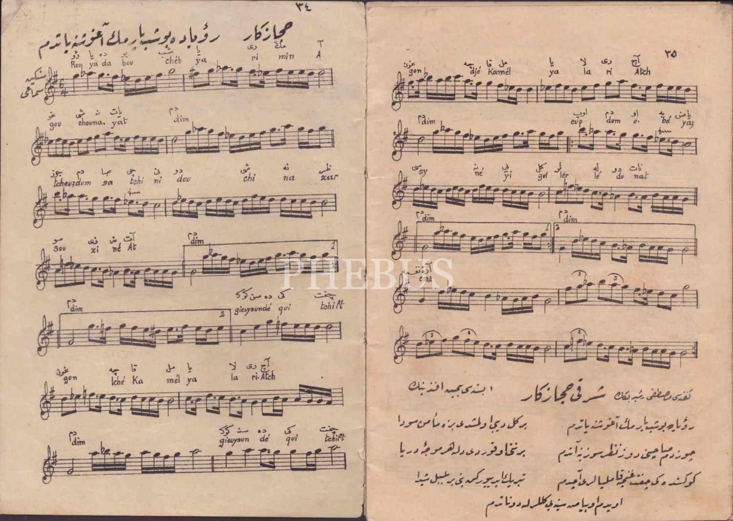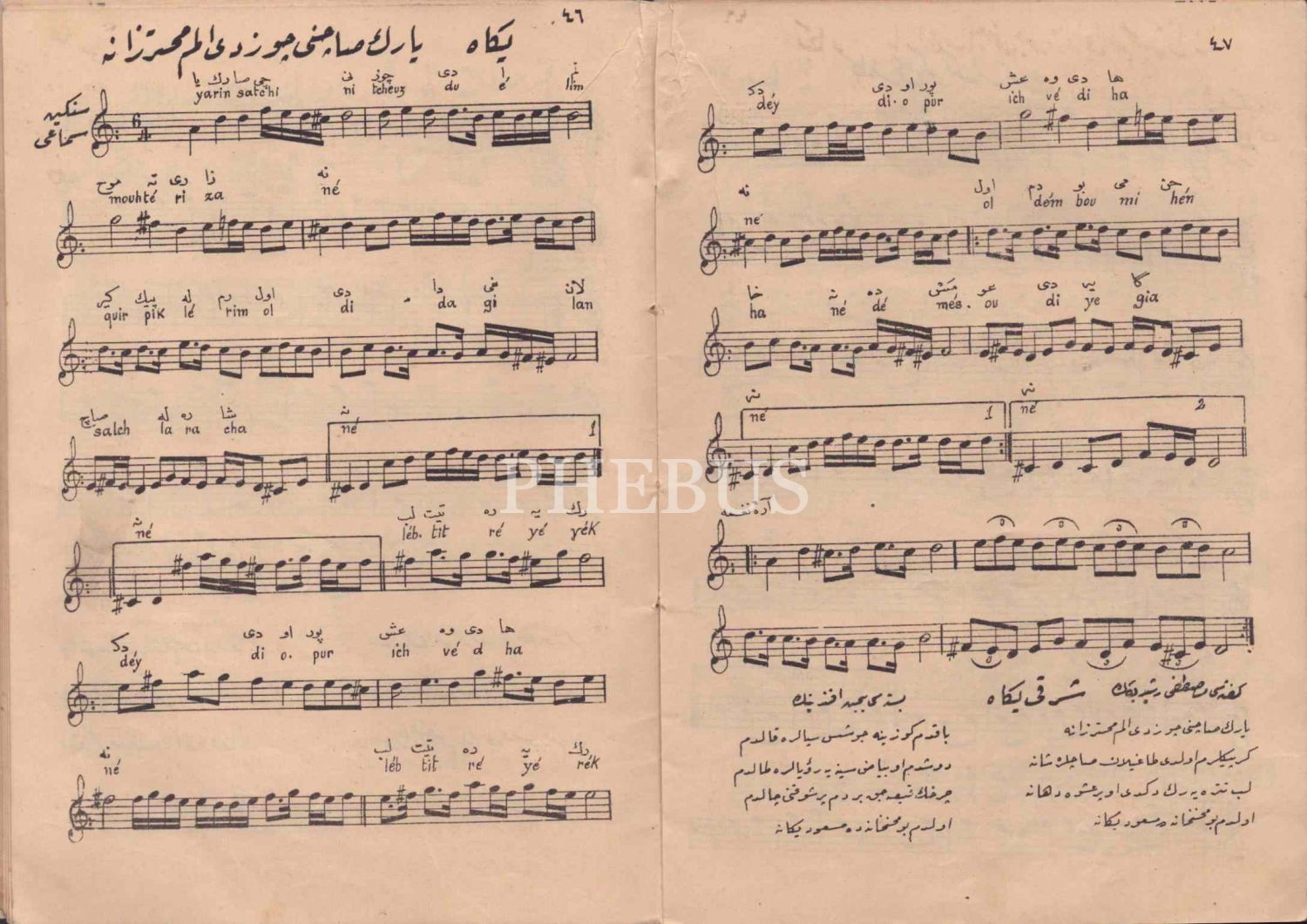 "Merhamet eyleme hiç sen de bana ey nazlı yâr", "Toplandı bulutlar", "Sakladım söylemedim", "Güllerin güllerinden", "Kurban olam endamına yâr senin" vd. başlıklı notaları içermektedir.