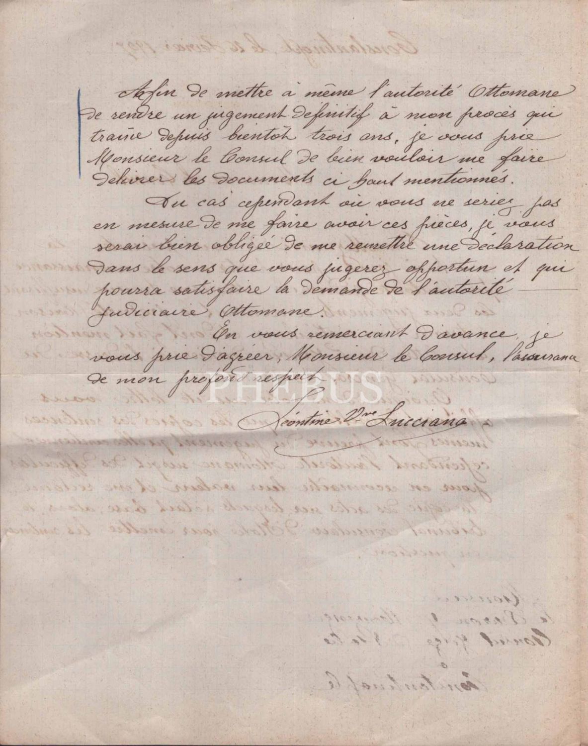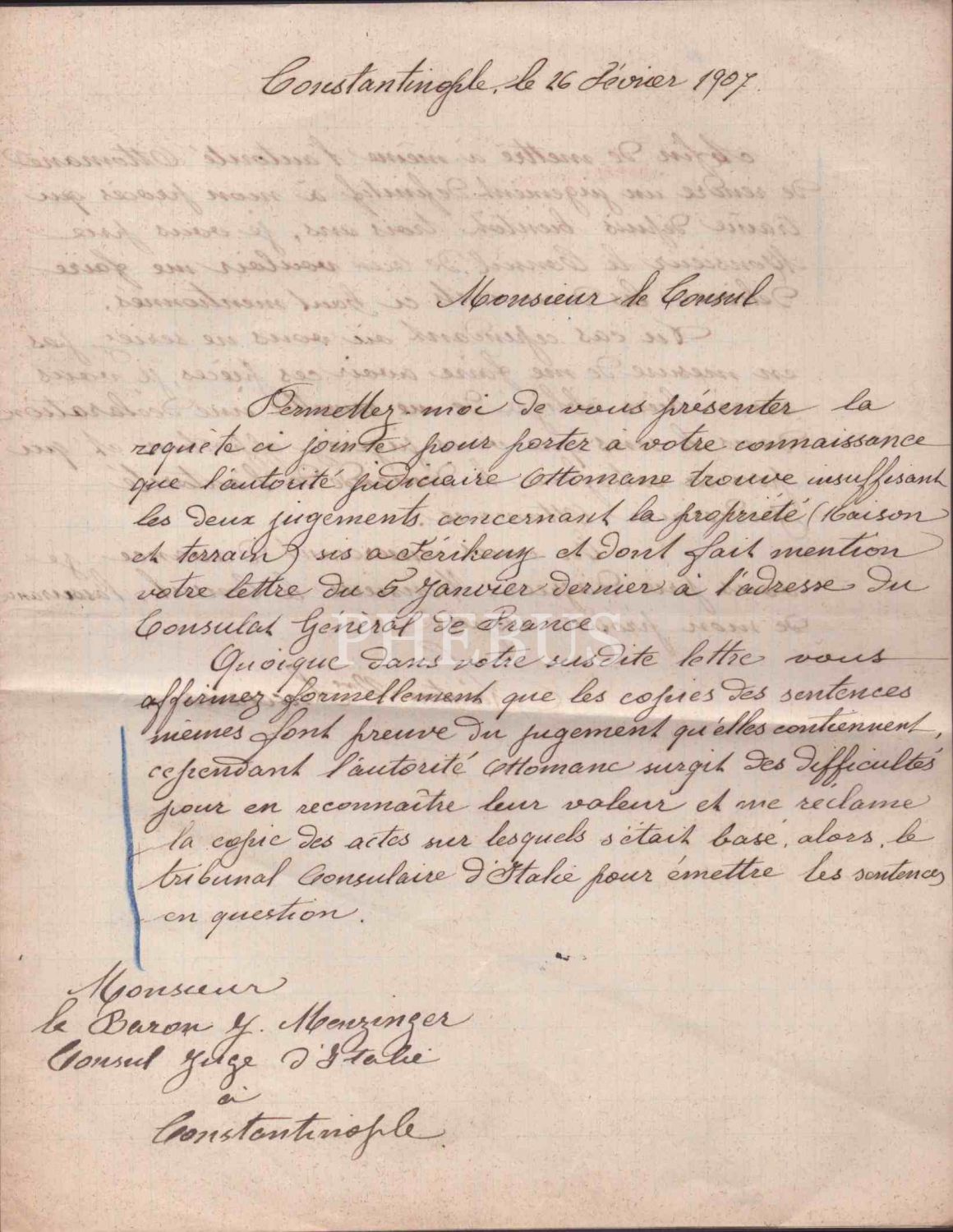 Konsolosluğa gönderilen Fransızca evrak, 26 Şubat 1907, Constantinople, 21x27 cm