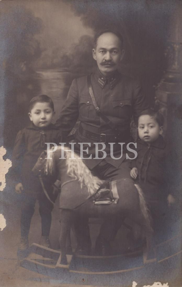 Subay ve çocukların oyuncak at ile çekilmiş hatıra fotoğrafı, 12 Şubat 1927, 9x14 cm