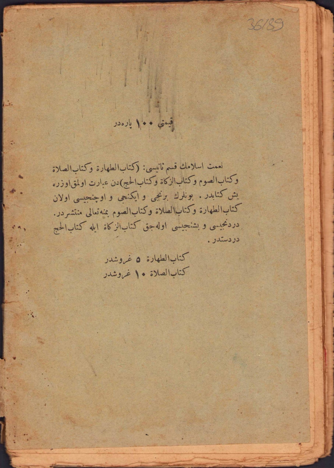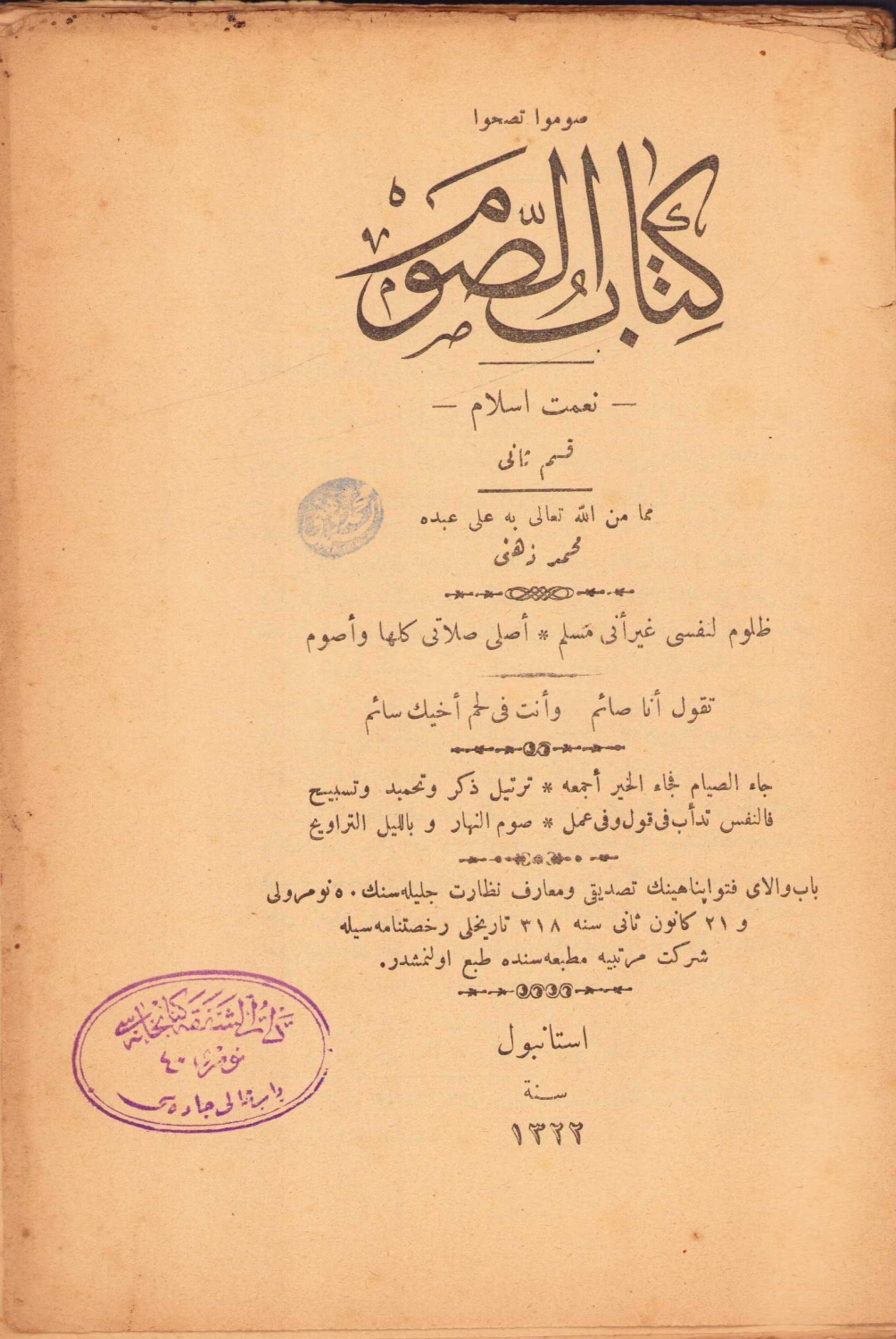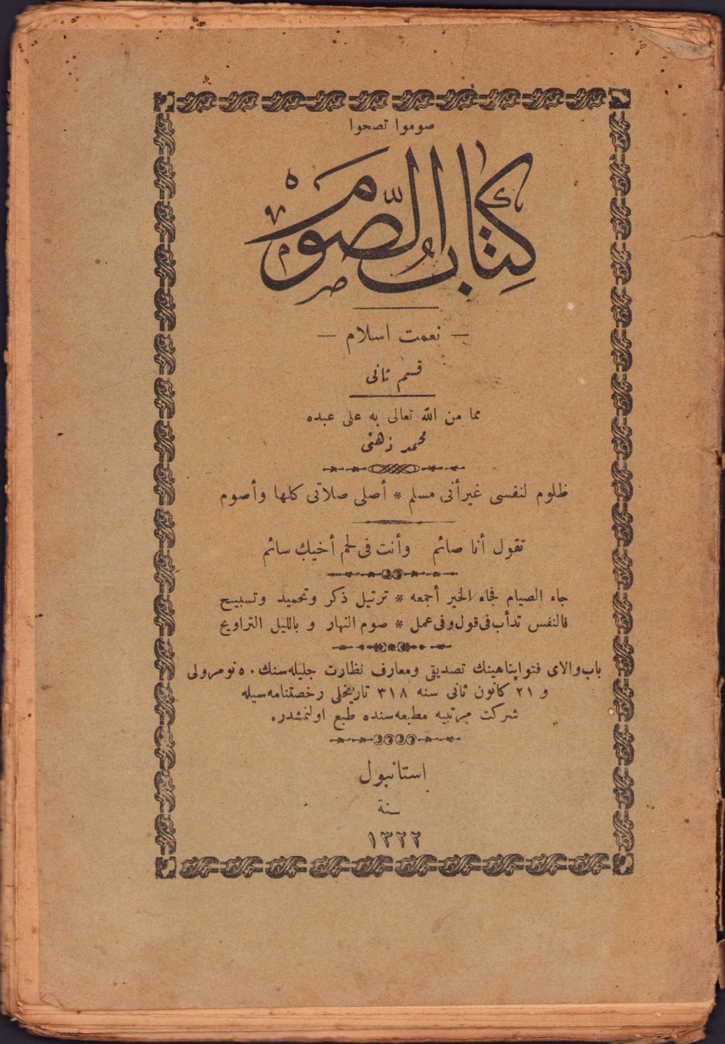 Osmanlıca Kitabü's-savm kitabı - Nimet-i İslam, İkinci kısım, Mehmed Zihni, İstanbul, 1322, haliyle, 119 sayfa, 14x20 cm
