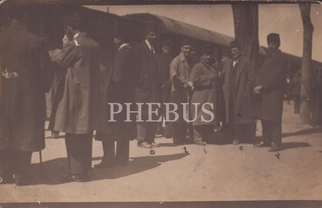 Tren önünde bekleyen beyefendilerin hatıra fotoğrafı, 16 Nisan 1340, 9x14 cm