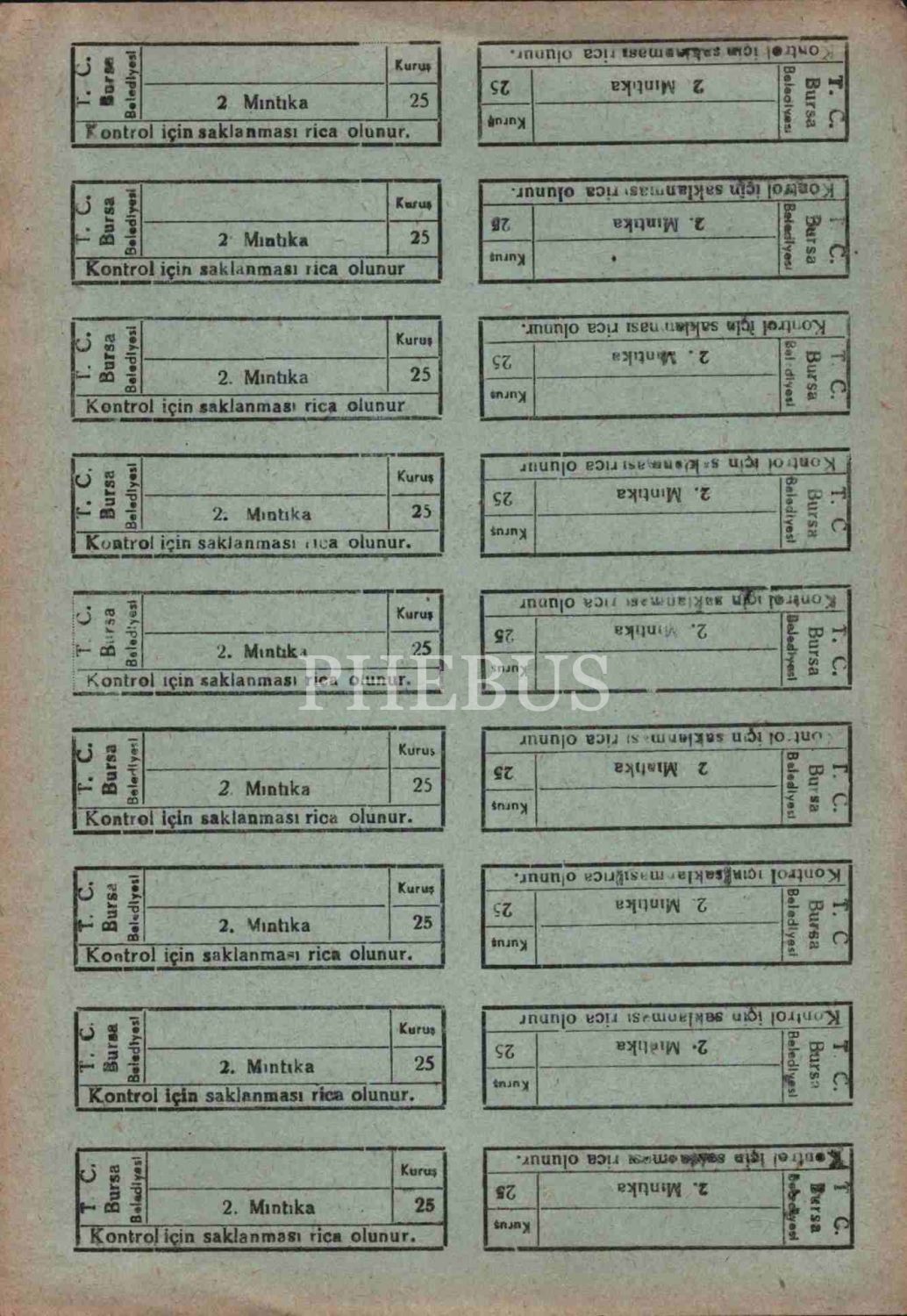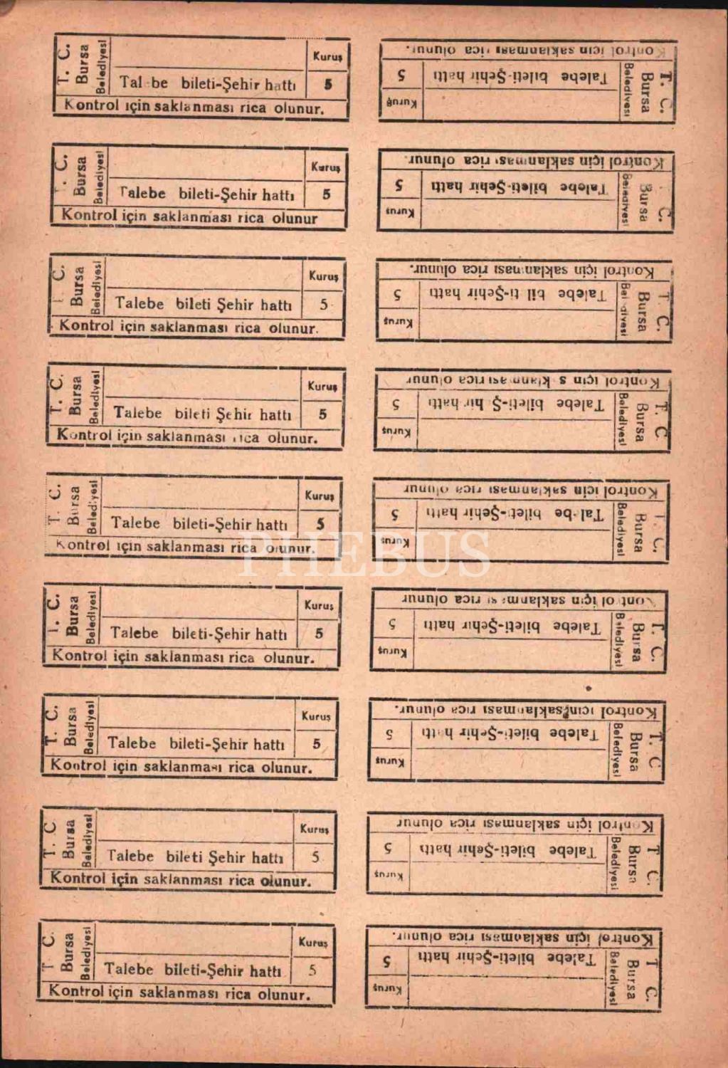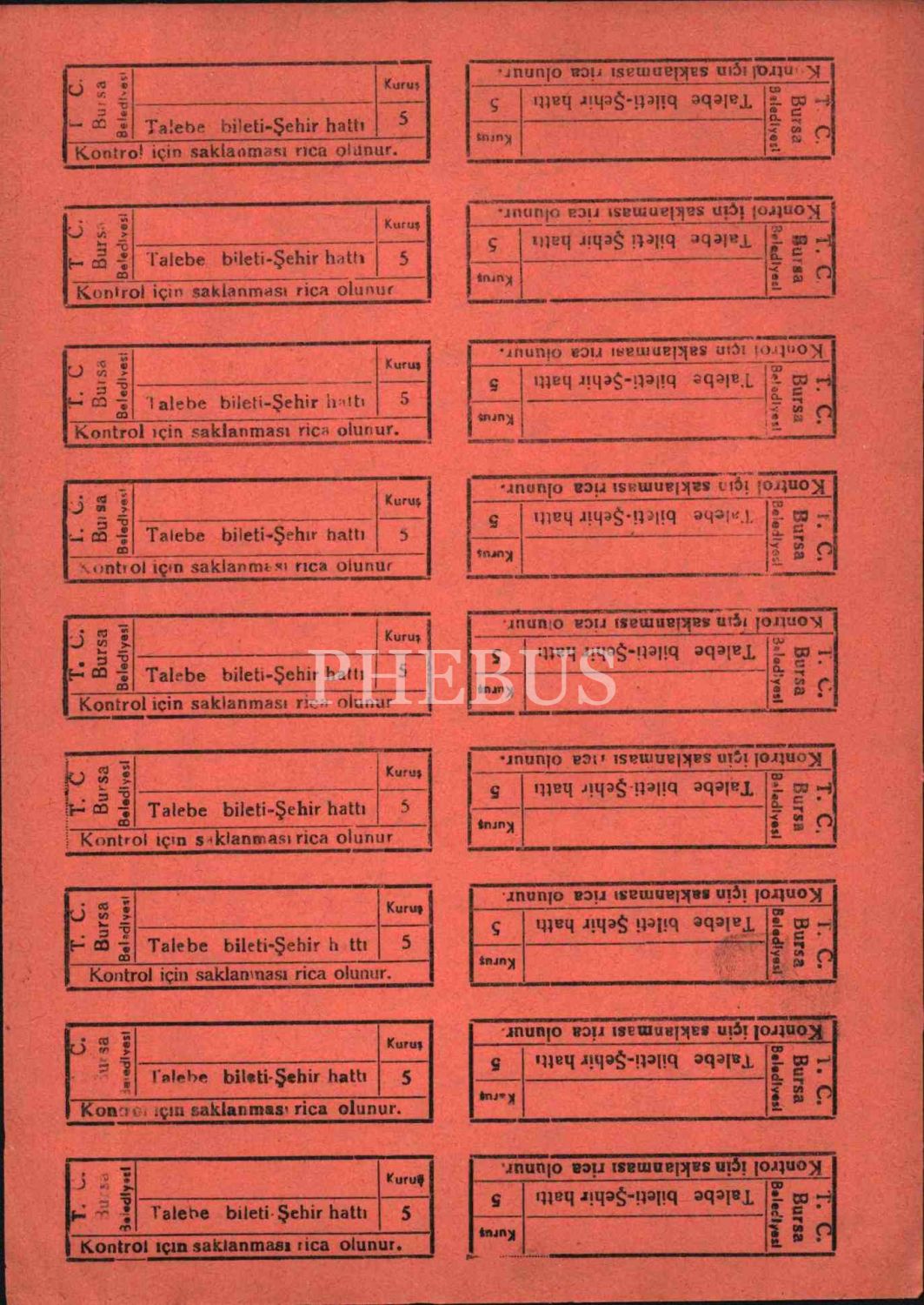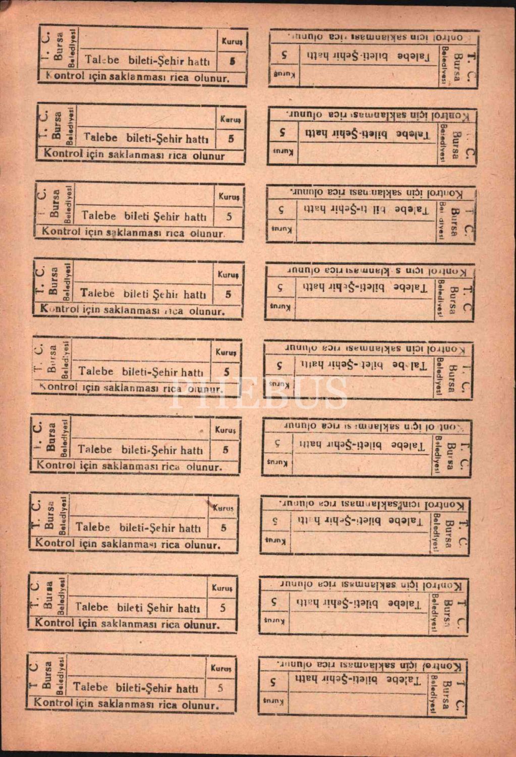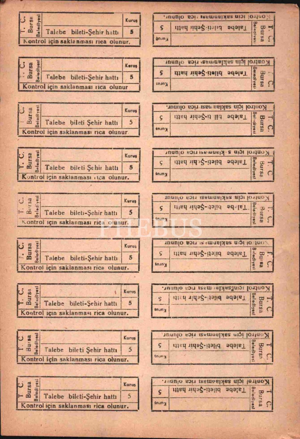 Bursa için biletler (8 sayfa), 17x25 cm