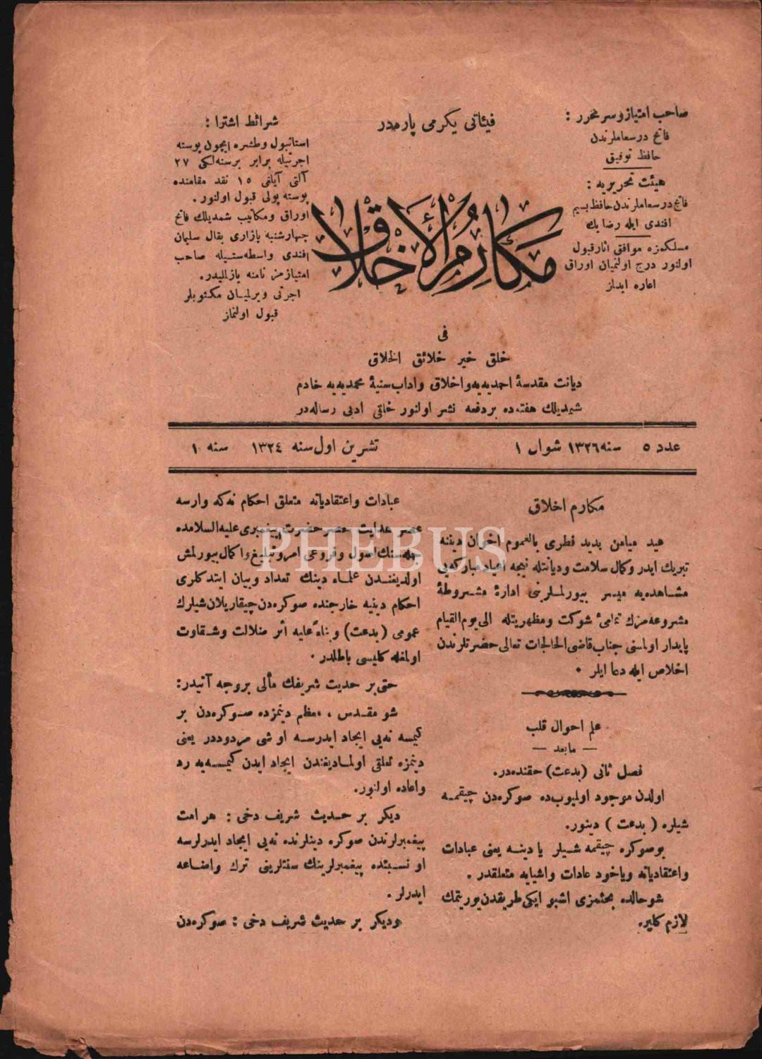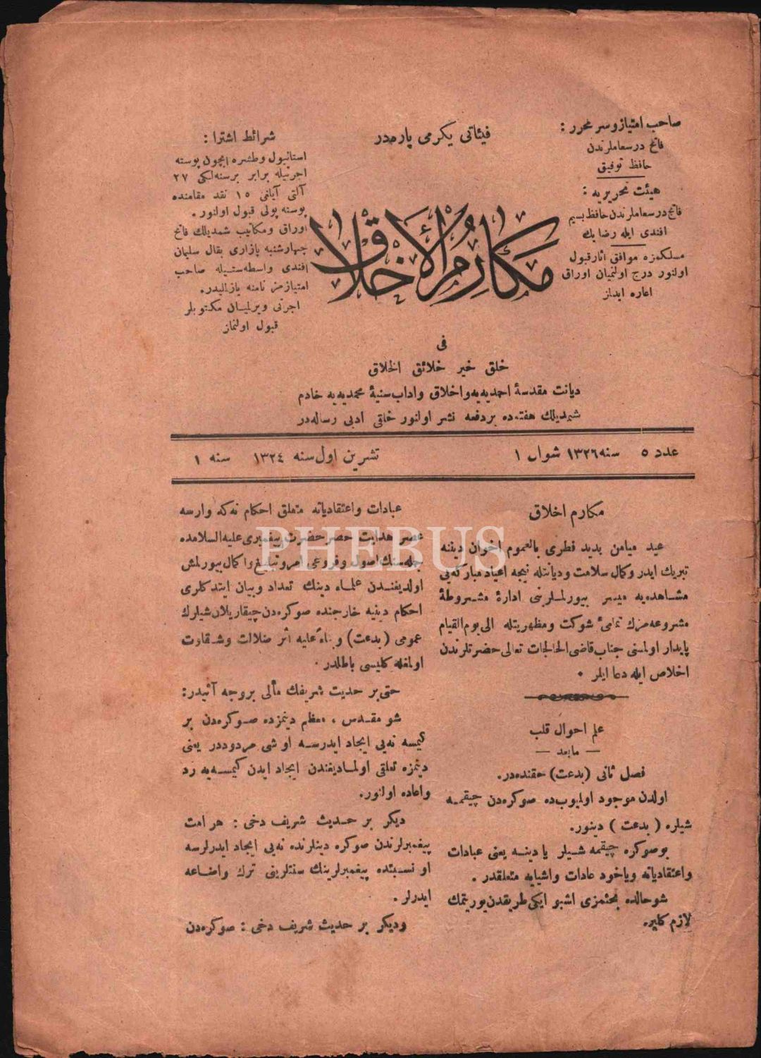 MEKÂRİM-İ AHLAK dergisinin 1326 tarihli 2 sayısı, 20x28 cm
