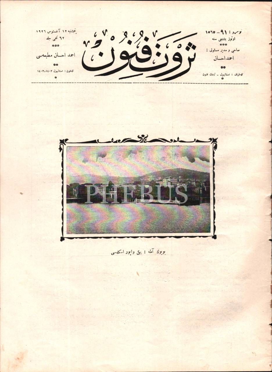 SERVET-İ FÜNUN dergisinin, Büyük Ada Yeni Vapur İskelesi´ne ait kapak görselli 91. sayısı, 12 Ağustos 1926, 24x32 cm