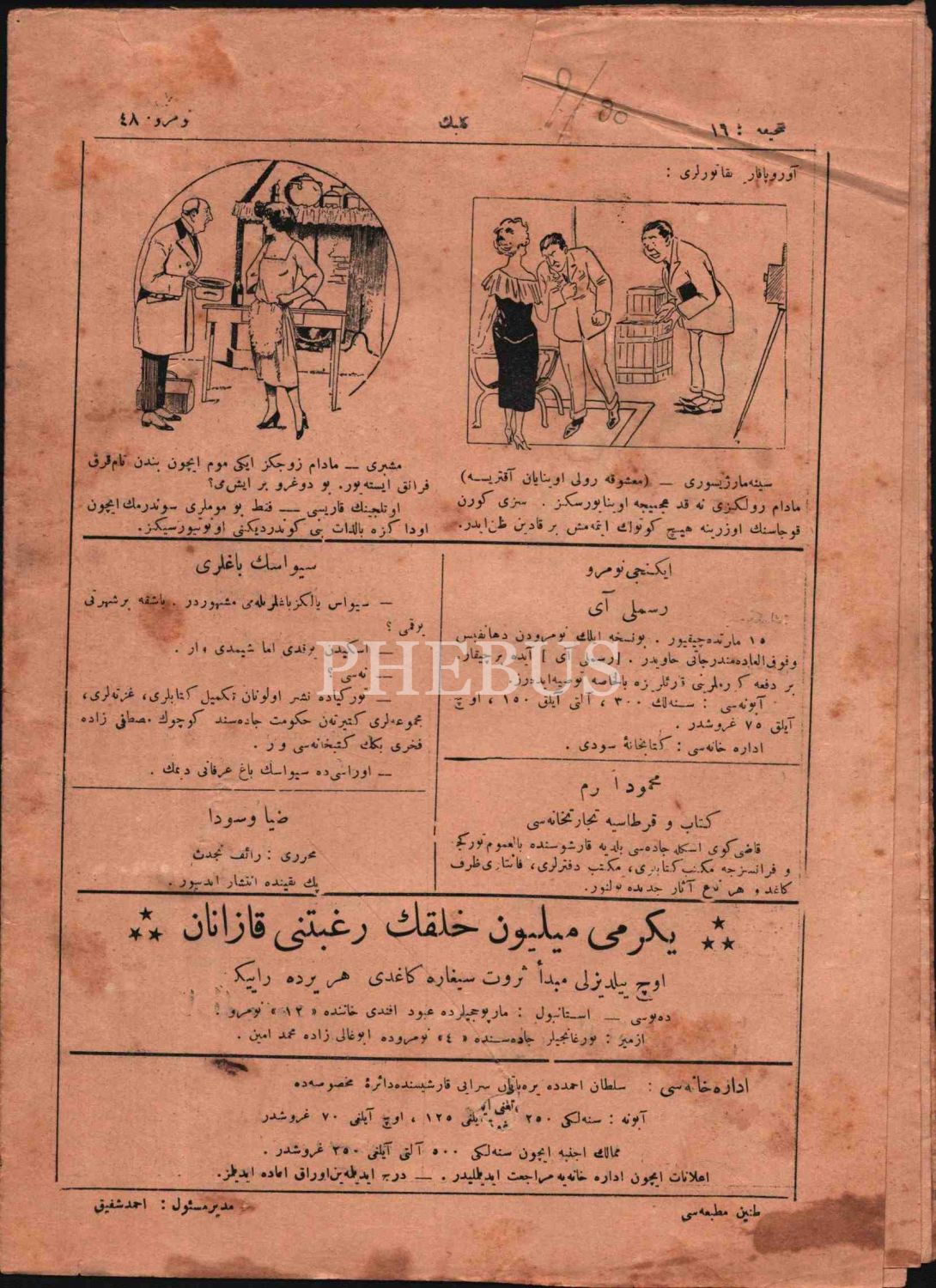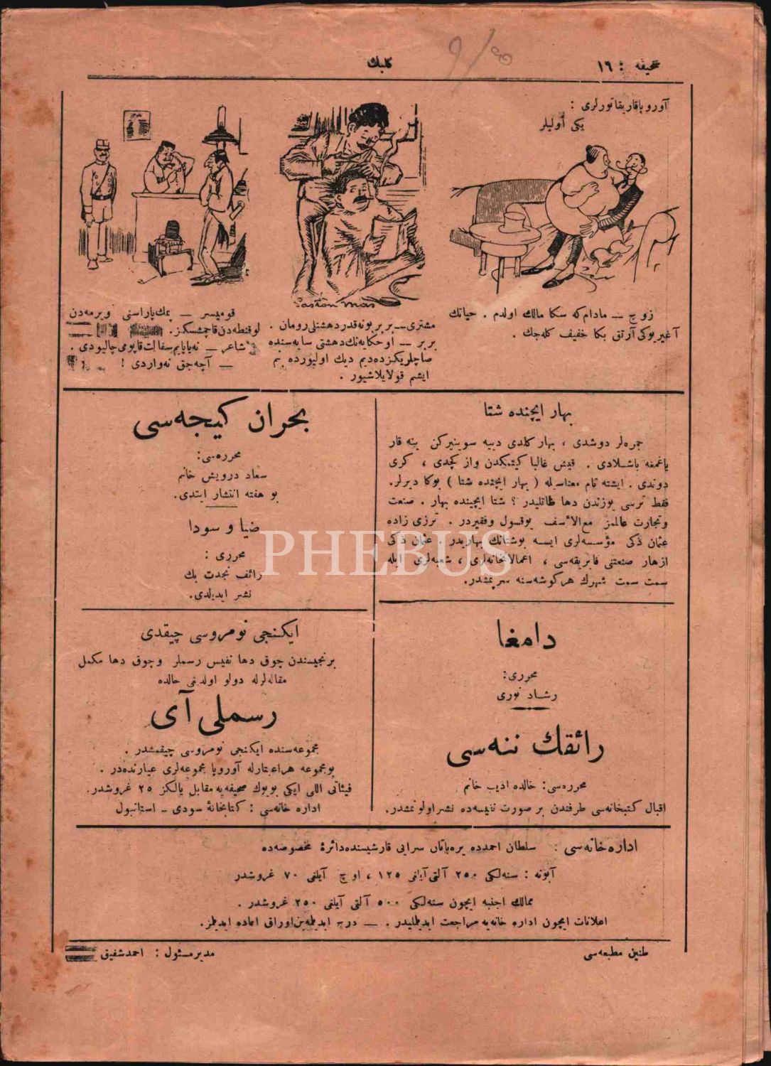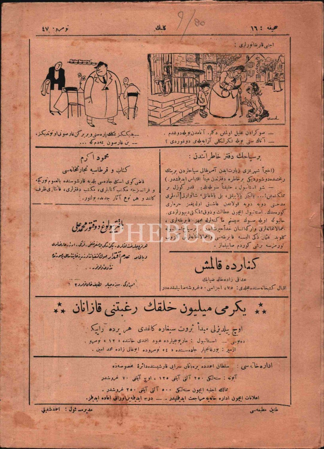 Osmanlıca edebî mizah dergisi KELEBEK´in 1340 tarihli 4 sayısı, 21x28 cm
