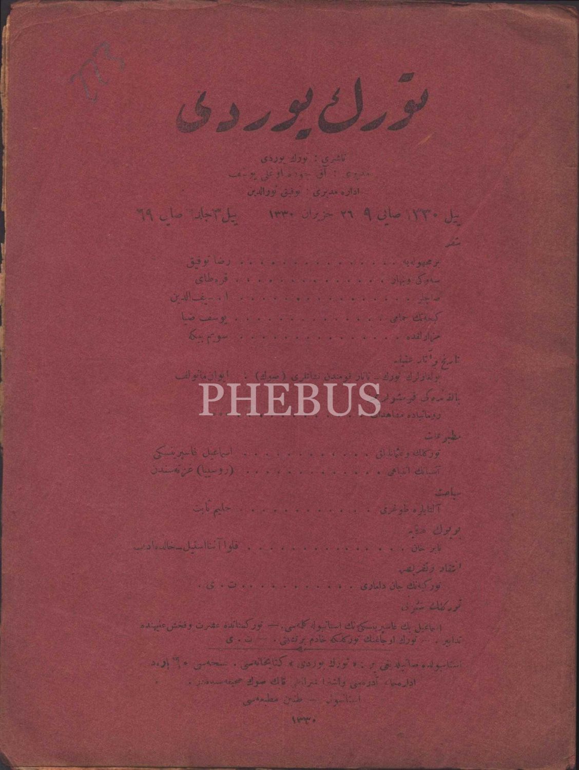 TÜRK YURDU dergisinin 69. sayısı, 26 Haziran 1330, 19x26 cm