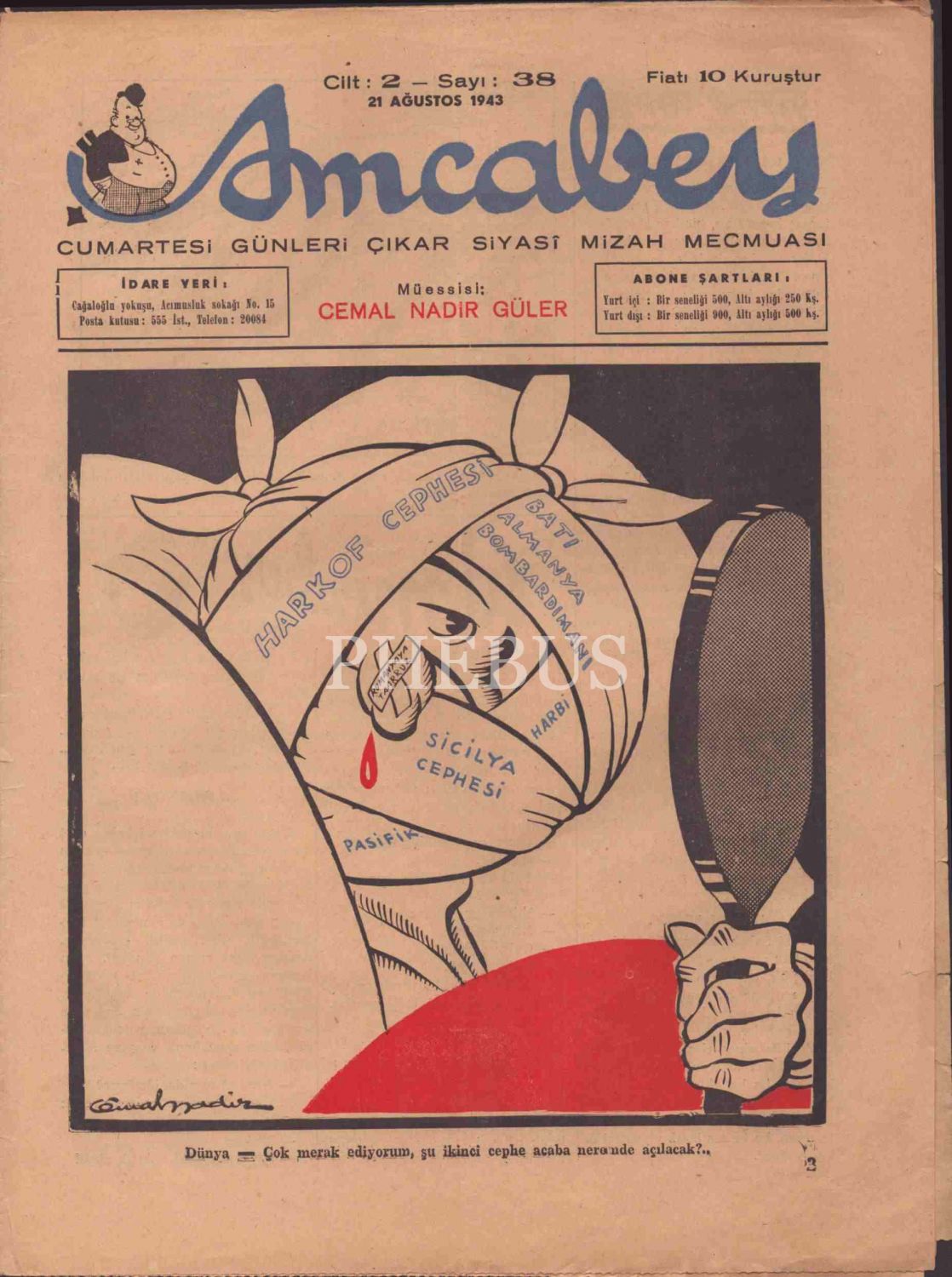Siyasi mizah dergisi AMCABEY´in 1943-44 tarihli 6 sayısı, 31x45 cm