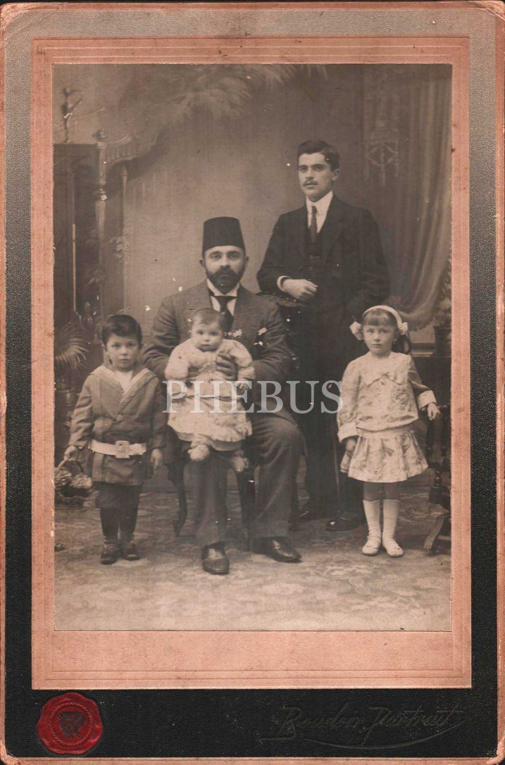 Baba ve çocuklarının hatıra fotoğrafı, 15x23 cm