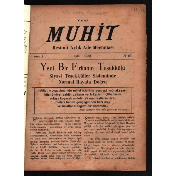 İçerisinde "Tamirden Sonra Rumeli Hisarı - Foto: Ferit Can (Mayıs 1959)" ve "Anıt Kabirde Tarihî Merasim (Kasım 1959)" başlıklı iki adet dergi eki mevcuttur.