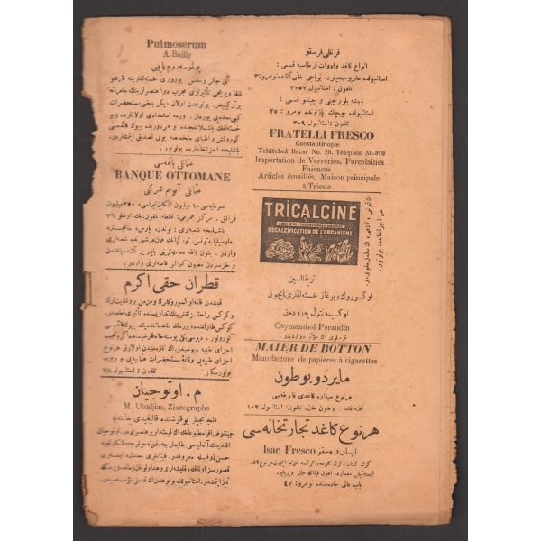Sene 2: Sayı 55 ve 77, Sene 3: Sayı 119, 121, 141, 142, 143, 144, 145, 146, 147, 148, 149, 150, 151 ve 152, Sene 8: Sayı 2, 4 ve 387, Sene 9: Sayı 66....