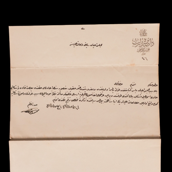 İsmail Müştak Efendi, Meclis-i Ayan Başkatipliği görevinden sebepsiz bir şekilde azledildiğine ve görevin kendisine tekrar verilmesi gerektiğine dair bir dilekçe kaleme almış ve Sadrazam Mahmut Şevket Paşa´ya dilekçesini sunmuştur. Bunun üzerine, Mahmut Şevket Paşa Meclis-i Ayan Riyaseti´nden İsmail Müştak Efendi´nin azledilme sebebini öğrenmek için bu dilekçeyi kaleme almıştır.