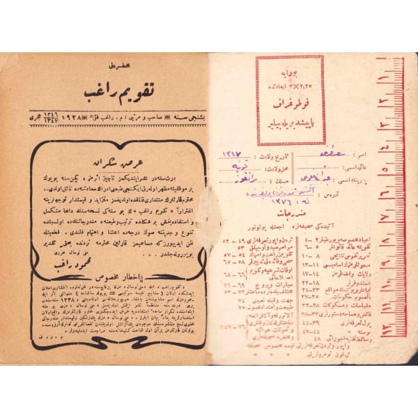 Defterin kapağında yer alan "Mektep Defteri" yazısında ünlü hattat Mustafa Halim Özyazıcı´nın ketebesi yer almaktadır. * Bazı sayfalar sırttan ayrılmıştır.