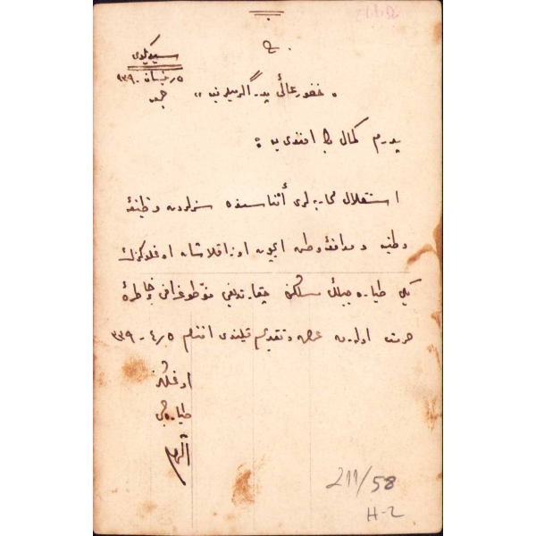 "İthaf, "Pederim Kemal Beyefendi'ye: İstiklâl muharebeleri esnasında sizlerden vazife-i vataniye ve müdafaa-i vatan için uzaklaşan oğlunuzun yeni tayyarecilik mesleğinde çıkartdığı fotoğrafı bir hatıra-i hürmet olarak arz ve takdim kılındı efendim. - Oğlunuz Tayyareci İlham?" şeklindedir.