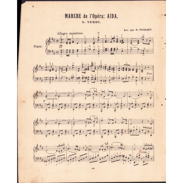 Şehzade Burhaneddin Efendi tarafından tanzim edilmiş Marş-ı Ali [Grande Marche], Osmanlıca ve Fransızca, 4 sayfa, 24x32,5 cm.