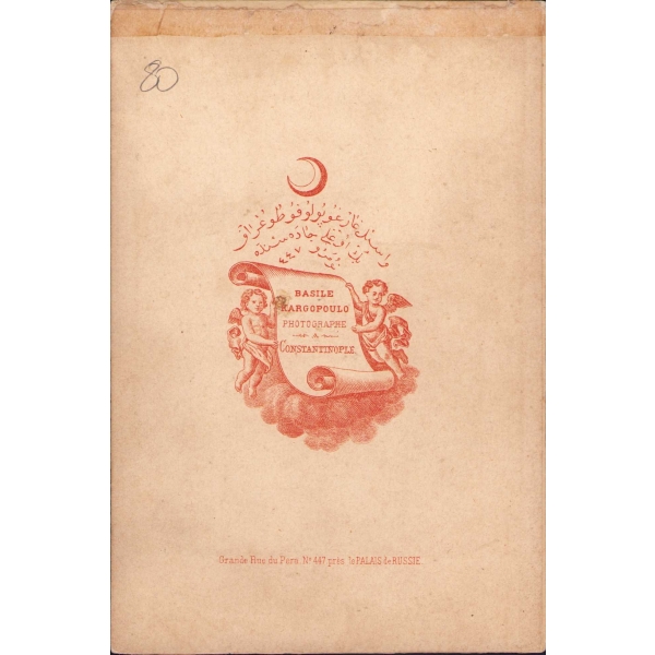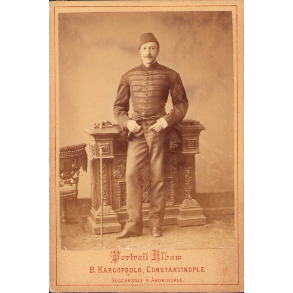 Osmanlıca - Fransızca Photo Kargopoulo kabin fotoğraf, fesli Osmanlı tip, 10x15 cm